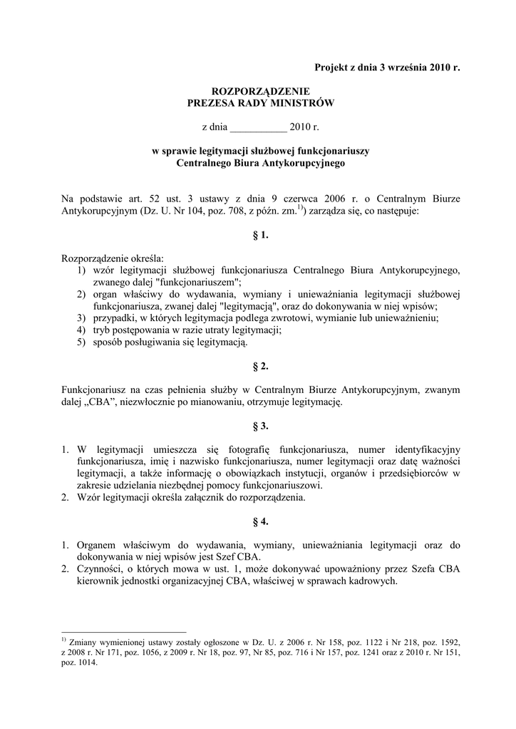 Projekt rozporządzenia w sprawie legitymacji slużbowej
