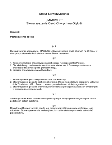 Statut Stowarzyszenia - MAXIMUS | Stowarzyszenie osób chorych