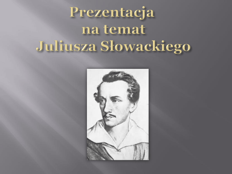 Metryka chrztu Słowackiego Powieści Poetyckie: •Hugo •Jan Bielecki •Lambro •Arab Poematy Dygresyjne: •Podróż do Ziemi Świętej z Neapolu •Beniowski Poematy: • • • • Anhelli Godzina Myśli W Szwajcarii Ojciec Zadżumionych Dramaty: •Maria Stuart •Kordian •Horsztyński •Balladyna •Lilla Weneda •Mazepa Euzebiusz Słowacki 1773-1814 Salomea Słowacka (Bécu) 1792-1855