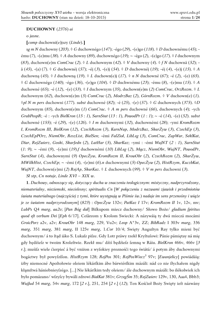DUCHOWNY (2376) ai o jasne. - Słownik polszczyzny XVI wieku