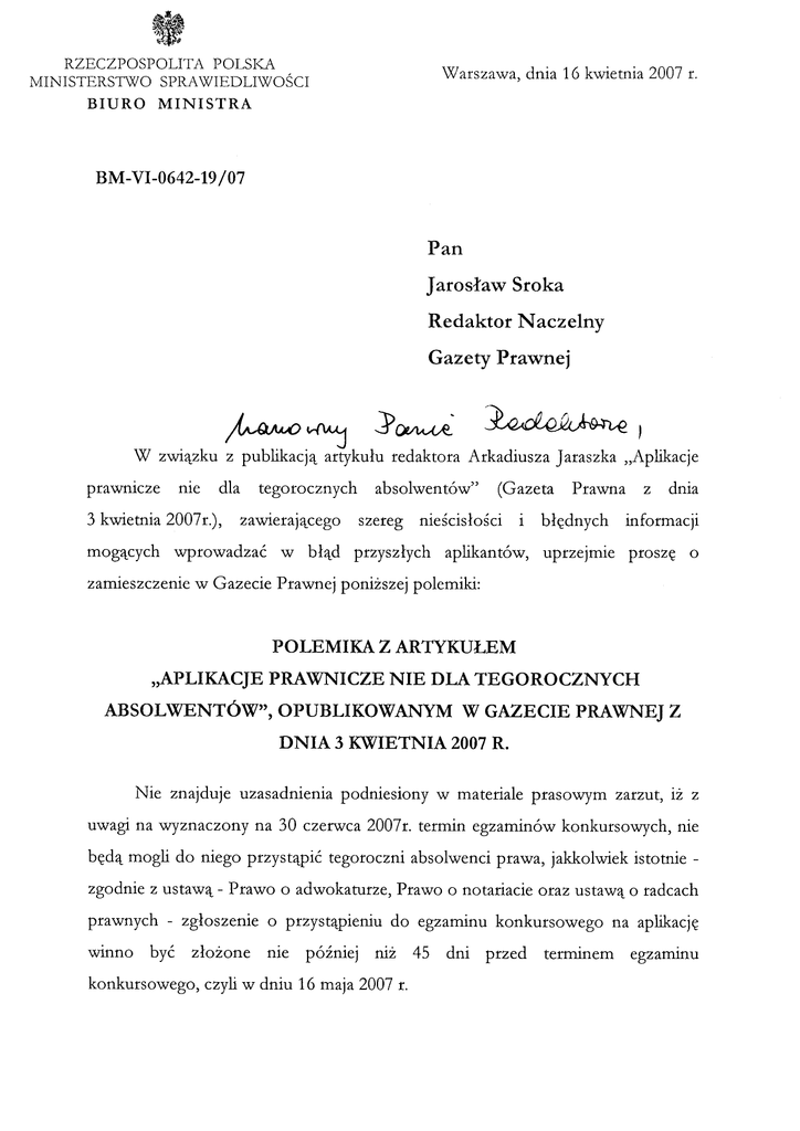zamieszczenie w Gazecie Prawnej poniższej polemiki: