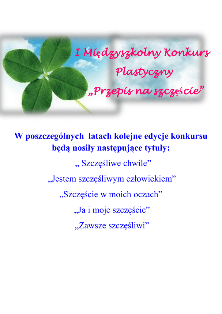 I Międzyszkolny Konkurs Plastyczny „Przepis na szczęście”