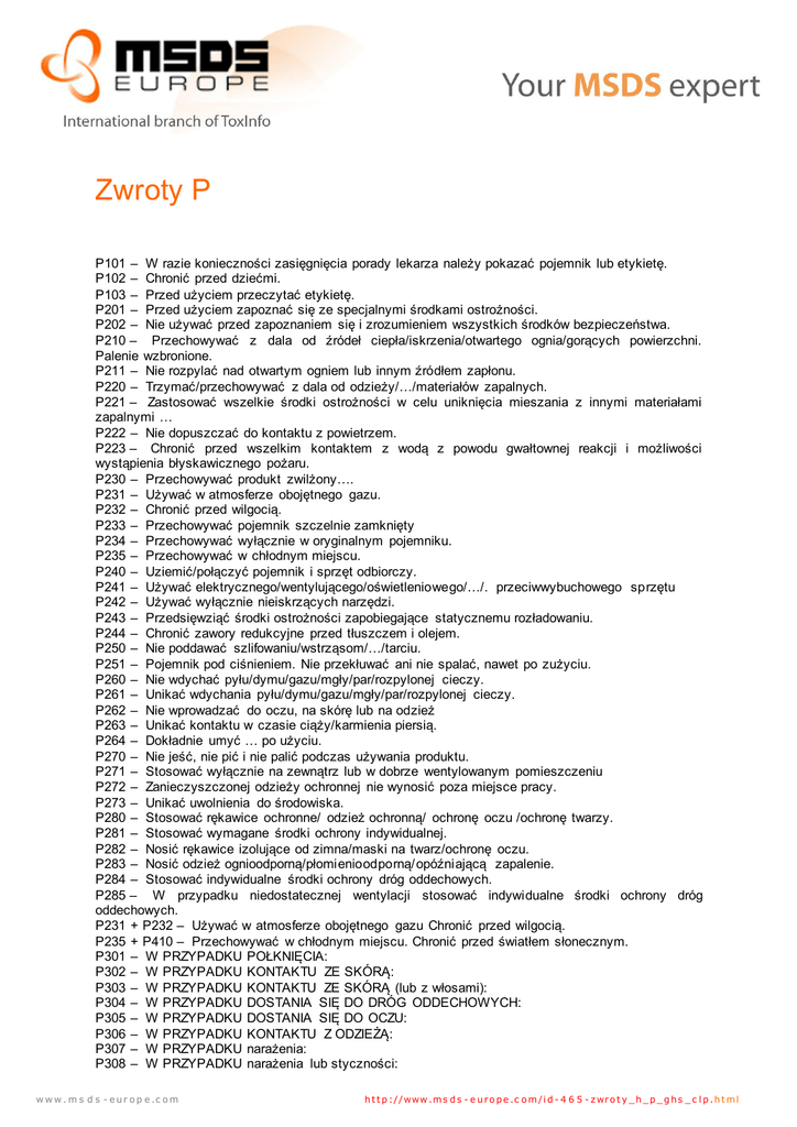 Zwroty P - MSDS Europe
