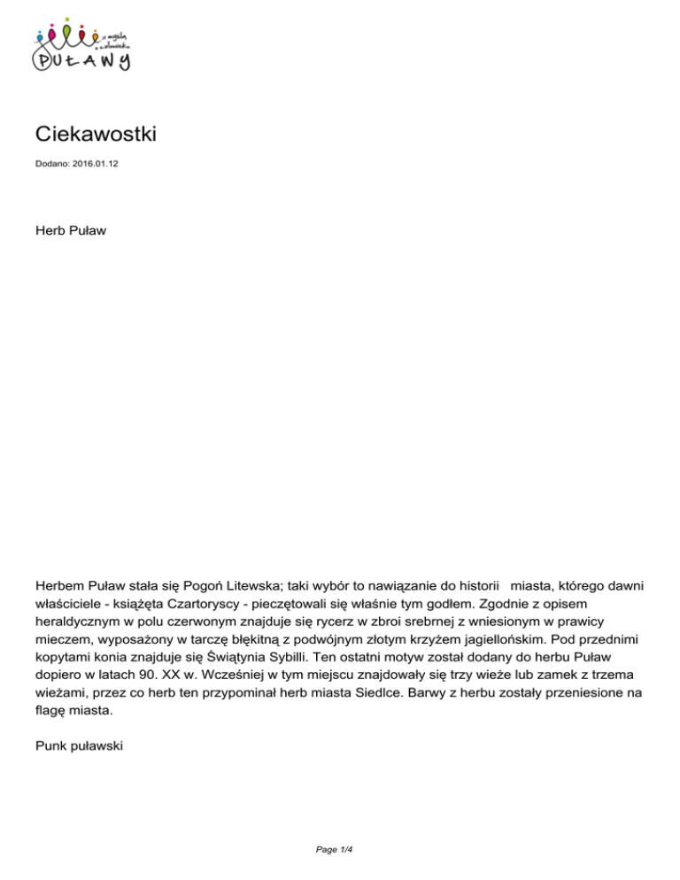 Ciekawostki - Serwis Turystyczny Miasta Puławy