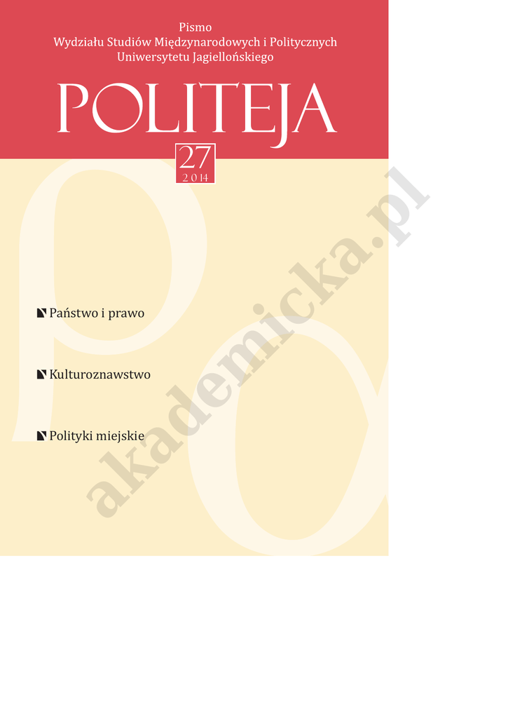 27 ad e Kulturoznawstwo m Państwo i prawo ic ka . pl 2 0 14 ak Polityki miejskie 2014-07-01 13:10:37 Księgarnia Akademicka Sp. z o.o. ul. św. Anny 6, 31-008 Kraków tel./fax: 12 431 27 43 [email protected] www.akademicka.pl ISSN 1733-6716 ad e Redakcja tekstów: Justyna Wójcik pl „Politeja. Pismo Wydziału Studiów Międzynarodowych i Politycznych Uniwersytetu Jagiellońskiego” ul. Piłsudskiego 13, pok. 209 31-110 Kraków tel.: 12 663 34 74, fax: 12 421 53 65 [email protected] www.politeja.wsmip.uj.edu.pl ic ka . Publikacja wydana w dwóch wersjach: elektronicznej i drukowanej. Wersją pierwotną jest format elektroniczny Recenzenci Saad Abudayeh ( Jordan University) Roman Bäcker (Uniwersytet Mikołaja Kopernika w Toruniu) Piotr Balcerowicz (Uniwersytet Warszawski) Marek Bankowicz (Uniwersytet Jagielloński) Włodzimierz Bernacki (Uniwersytet Jagielloński) Agnieszka Bień-Kacała (Uniwersytet Mikołaja Kopernika w Toruniu) Maksim Bulachtin (Perm University) Adam Chmielewski (Uniwersytet Wrocławski) Joachim Diec (Uniwersytet Jagielloński) Artur Demchuk (Lomonosov Moscow State University) Andrzej Dudek (Uniwersytet Jagielloński) Anna Karwińska (Uniwersytet Ekonomiczny w Krakowie) Wojciech Kaute (Uniwersytet Śląski w Katowicach) Paulina Kewes (University of Oxford) Wawrzyniec Konarski (Uniwersytet Jagielloński) Leszek Korporowicz (Uniwersytet Jagielloński) Krzysztof Kościelniak (Uniwersytet Jagielloński) Barbara Krauz-Mozer (Uniwersytet Jagielloński) Marek Maciejewski (Uniwersytet Wrocławski) Ryszard Małajny (Uniwersytet Śląski w Katowicach) Marcin Marcinko (Uniwersytet Jagielloński) Gerhard Meiser (Universität Halle) Małgorzata Melchior (Uniwersytet Warszawski) Włodzimierz Mich (Uniwersytet Marii Curie Skłodowskiej w Lublinie) Tadeusz Miczka (Uniwersytet Śląski w Katowicach) Andrea Schmidt (Pecs University) Krystyna Siellawa-Kolbowska (Szkoła Główna Gospodarstwa Wiejskiego w Warszawie) Mieczysław Smoleń (Uniwersytet Jagielloński) Barbara Stoczewska (Uniwersytet Jagielloński) Lucjan Suchanek (Państwowa Wyższa Szkoła Zawodowa w Oświęcimiu) Krzysztof Szczerski (Uniwersytet Jagielloński) Maria Szmeja (Akademia Górniczo-Hutnicza w Krakowie) Dariusz Szpoper (Uniwersytet Gdański) Katarzyna Warmińska (Uniwersytet Ekonomiczny w Krakowie) Janusz J. Węc (Uniwersytet Jagielloński) Howard Williams (Aberystwyth University) Ryszard Zięba (Uniwersytet Warszawski) m Publikacja wydana dzięki pomocy de minimis z Ministerstwa Nauki i Szkolnictwa Wyższego oraz środkom Wydziału Studiów Międzynarodowych i Politycznych UJ. Projekt okładki: Agnieszka Kluzik Typografia, skład i łamanie: ak www.anatta.pl Nakład: 150 egz. „Politeja” Uniwersyt tycznych, ników nau ginalnych, redakcję a w języku p cji zależy o są wyznac Wyma 1. Te 2. Ar wr ne 3. Op ny 4. Na 5. W wr 6. W 7. Pro 8. Pr str 9. Au dw uz 10.Po tw Pismo Wydziału Studiów Międzynarodowych i Politycznych Uniwersytetu Jagiellońskiego POLITEJA Kraków 2014 ad e m ic ka . RADA PROGRAMOWA Prof. Jerzy Axer (Uniwersytet Warszawski) Prof. Andrea Ciampani (LUMSA, Roma) Prof. Břetislav Dančak (Masaryk University, Brno) Prof. Rahul Peter Das (Martin-Luther-Universität Halle-Wittenberg) Prof. Taras Finikov (KROK University, Kyiv) Prof. Saleh K. Hamarneh ( Jordan University) Prof. Ferenc Hörcher (Pázmány Péter Catholic University, Budapest) Prof. Alvydas Jokubaitis (Vilnius University) Prof. Wiesław Kozub-Ciembroniewicz (Instytut Nauk Politycznych i Stosunków Międzynarodowych UJ) Prof. Zdzisław Mach (Instytut Europeistyki UJ) Prof. Andrzej Mania (Instytut Nauk Politycznych i Stosunków Międzynarodowych UJ) Prof. Tadeusz Paleczny (Instytut Studiów Regionalnych UJ) Prof. Dorota Praszałowicz (Instytut Amerykanistyki i Studiów Polonijnych UJ) Prof. Anna Raźny (Instytut Rosji i Europy Wschodniej UJ) Prof. John Robertson (Cambridge University) Prof. Irena Stawowy-Kawka (Instytut Nauk Politycznych i Stosunków Międzynarodowych UJ) Prof. Noël O’Sullivan (University of Hull) Prof. Adam Walaszek (Instytut Amerykanistyki i Studiów Polonijnych UJ) Prof. Andrey Yuriyevich Shutov (Lomonosov Moscow State University) Prof. Andrzej Zięba (Instytut Nauk Politycznych i Stosunków Międzynarodowych UJ) pl Nr 1 (27) REDAKTOR NACZELNY CZASOPISMA Prof. Bogdan Szlachta (Instytut Nauk Politycznych i Stosunków Międzynarodowych UJ) ak SEKRETARZ REDAKCJI CZASOPISMA Dr hab. Dorota Pietrzyk-Reeves (Instytut Nauk Politycznych i Stosunków Międzynarodowych UJ) Dr Arkadiusz Górnisiewicz (Instytut Nauk Politycznych i Stosunków Międzynarodowych UJ) Spis treści Artykuły PAŃSTWO I PRAWO Jan Wiktor Tkaczyński, Prawo ustrojowe państwa. O aporii terminu prawnego w polskiej i niemieckiej nauce o polityce 21 Dariusz Stolicki, Ramy prawne reżimu detencji wojskowej w prawie amerykańskim w świetle aktualnego orzecznictwa 61 Ewa Myślak, Pozycja Narodowego Banku Polskiego w systemie naczelnych organów władzy państwowej. Analiza wybranych zagadnień 81 ic ka . KULTUROZNAWSTWO pl 5 Jolanta Ambrosewicz-Jacobs (in co-operation with Elisabeth Büttner), Isolated Islands? Memory of the Holocaust in Formal and Informal Education. The Case Study of Post-Communist Poland 107 Tadeusz Paleczny, Dialog międzykulturowy w społeczeństwach pluralistycznych POLITYKI MIEJSKIE m 133 Jacek Gądecki, Paweł Kubicki, Wstęp 135 Jacek Gądecki, Paweł Kubicki, Polityki miejskie ad e 157 Kacper Pobłocki, Gentryfikacja, własność i polski kapitalizm polityczny 179 Anna Sosnowska, Awans symboliczny mimochodem. Liderzy polskiego Greenpointu wobec gentryfikacji dzielnicy 209 Joanna Orzechowska-Wacławska, Baskijskie polityki miejskie: konstruowanie nowej symboliki i nowego oblicza Bilbao ak 229 Elżbieta Nieroba, Muzeum w rytmie miasta – nowe wyzwania dla tradycyjnej elity 245 Magdalena Łukasiuk, Renesans architektury modernizmu jako fenomen społeczny 263 Marta Smagacz-Poziemska, (Nowe) przestrzenie życiowe młodych mieszka