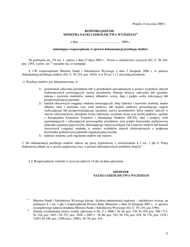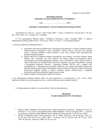 Projekt 14 stycznia 2009 r. ROZPORZĄDZENIE MINISTRA NAUKI I