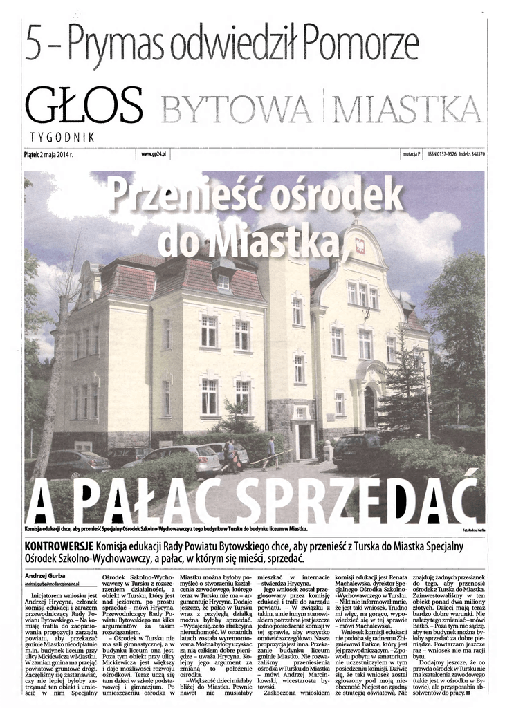 GŁOS TYGODNIK Piątek 2 maja 2014 r. www.gp24.pl mutacja P x - S I SN 0137-9526 Indeks 348570 rif ^ y i Komisja edukacji chce, aby przenieść Specjalny Ośrodek Szkolno-Wychowawczy z tego budynku wTursku do budynku liceum w Miastku. Fot Andrzej Gtiita KONTROWERSJE Komisja edukacji Rady Powiatu Bytowskiego chce, aby przenieść z Turska do Miastka Specjalny Ośrodek Szkolno-Wychowawczy, a pałac, w którym się mieści, sprzedać. Andrzej Gurba [email protected] Inicjatorem wniosku jest Andrzej Hrycyna, członek komisji edukacji i zarazem przewodniczący Rady Po wiatu Bytowskiego. - Na ko misję trafiła do zaopinio wania propozycja zarządu powiatu, aby przekazać gminie Miastko nieodpłatnie m.in. budynek liceum przy ulicy Mickiewicza w Miastku. W zamian gmina ma przejąć powiatowe gruntowe drogi. Zaczęliśmy się zastanawiać, czy nie lepiej byłoby za trzymać ten obiekt i umie ścić w nim Specjalny Ośrodek Szkolno-Wychowawczy w Tursku z rozsze rzeniem działalności, a obiekt w IXirsku, który jest nad jeziorem, po prostu sprzedać - mówi Hrycyna. Przewodniczący Rady Po wiatu Bytowskiego ma kilka argumentów za takim rozwiązaniem. - Ośrodek w Tursku nie ma sali gimnastycznej, a w budynku liceum ona jest. Poza tym obiekt przy ulicy Mickiewicza jest większy i daje możliwości rozwoju ośrodkowi. Teraz uczą się tam dzieci w szkole podsta wowej i gimnazjum. Po umieszczeniu ośrodka w Miastku można byłoby po myśleć o stworzeniu kształ cenia zawodowego, którego teraz w Ttirsku nie ma - ar gumentuje Hrycyna. Dodaje jeszcze, że pałac w Thrsku wraz z przyległą działką można byłoby sprzedać. -Wydaje się, że to atrakcyjna nieruchomość. W ostatnich latach została wyremonto wana. Można byłoby uzyskać za nią całkiem dobre pieniędze - uważa Hrycyna. Ko lejny jego argument za zmianą to położenie ośrodka. -Większość dzieci miałaby bliżej do Miastka. Pewnie nawet nie musiałaby mieszkać w internacie - stwierdza Hrycyna. Jego wniosek został prze głosowany przez komisję edukacji i trafił do zarządu powiatu. - W związku z takim, a nie innym stanowi skiem potrzebne jest jeszcze jedno posiedzenie komisji w tej sprawie, aby wszystko omówić szczegółowo. Nasza propozycja jest inna. Przeka zanie budynku liceum gminie Miastko. Nie rozwa żaliśmy przeniesienia ośrodka w Tursku do Miastka - mówi Andrzej Marcin kowski, wicestarosta bytowski. Zaskoczona wnioskiem komisji edukacji jest Renata Machalewska, dyrektor Spe cjalnego Ośrodka Szkolno-Wychowawczego w Thrsku. - Nikt nie informował mnie, że jest taki wniosek. Trudno mi więc, na gorąco, wypo wiedzieć się w tej sprawie - mówi Machalewska. Wniosek komisji edukacji nie podoba się radnemu Zbi gniewowi Batkce, który jest jej przewodniczącym.-Z po wodu pobytu w sanatorium nie uczestniczyłem w tym posiedzeniu komisji. Dziwię się, że taki wniosek został zgłoszony pod moją nie obecność. Nie jest on zgodny ze strategią oświatową. Nie znajduję żadnych przesłanek do tego, aby przenosić ośrodek z Turska do Miastka. Zainwestowaliśmy w ten obiekt ponad dwa miliony złotych. Dzieci mają teraz bardzo dobre warunki. Nie należy tego zmieniać - mówi Batko. - Poza tym nie sądzę, aby ten budynek można by łoby sprzedać za dobre pie niądze. Powtarzam jeszcze raz - wniosek nie ma racji bytu. Dodajmy jeszcze, że co prawda ośrodek w Thrsku nie ma kształcenia zawodowego (takie jest w ośrodku w By towie), ale przysposabia ab solwentów do pracy. M Ja na miasteckim stadionie? Podyskutuj na piątek 2 maja 2014 r. Głos Pomorza/Głos Bytowa www.gp24.pl Aby wypoczynek nad wodą był bezpieczny (NIE)BEZPIECZEŃSTWO Niedaleko Miastka (Jezioro Przechlewskie) utonął 33-letni mężczyzna. To pierwsza tegoroczna ofiara kąpieli w naszym regionie. MSW organizuje akcję-konkurs związaną z bezpiecznym wypoczynkiem nad wodą. » w ' w ' JL:, ~ T" mmmmm Z uroków jezior tizeba umieć koizystać Andrzej Gurba [email protected] Mężczyzna spożywał wraz z innymi osobami alkohol. W pewnym momencie stwier dził, że przepłynie jezioro. Rozebrał się i wszedł do wody. Po kilkudziesięciu me trach zniknął pod po wierzchnią. Jego ciała jeszcze nie odnaleziono. To pierwsza ofiara kąpieli w naszym re gionie. Woda nie jest jeszcze ciepła. To w połączeniu z al koholem stanowi zabójczą mieszankę. W ubiegłym roku w Polsce utonęło aż 709 osób. To o 260 więcej niż w poprzednim i 313 więcej niż w 2011 roku. Corocznie Ministerstwo Spraw Wewnętrznych do łącza się do apeli służb ra towniczych o zachowanie szczególnej ostrożności pod czas wypoczynku nad wodą. W ramach akcji profilaktycz nych resort przygotował kon kurs dla uczniów szkół gim FoŁ Andrzej Gurtoa nazjalnych oraz ponadgimnazjalnych na najlepszy ma teriałfilmowydotyczący bez piecznych wakacji nad wo dą. Celem akcji „Niezata pialni" jest zwiększenie świa domości społeczeństwa, szczególnie młodych osób, w zakresie właściwego zacho wania w obszarze kąpielisk oraz zachęcenie do korzy stania z miejsc przeznaczo nych do tego typu wypo czynku. W konkursie mogą wziąć udział przedstawiciele szkół reprezentowani przez grupy składające się z do wolnej liczby uczniów oraz co najmniej jednego doro słego opiekuna. Nagrania, których mo tywem przewodnim ma być bezpieczny wypoczynek nad wodą, nie mogą przekraczać 40 sekund. - Zwycięzców wy łoni nasza komisja konkur sowa składająca się z eks pertów z MSW, policjantów, strażaków i ratowników wodnych. Najlepsze prace zostaną uhonorowane, a pla cówki oświatowe, z których spoty pochodzą, otrzymają nagrody pieniężne - mówią organizatorzy. Ponadto przyznana zo stanie nagroda internautów. Otrzymają szkoła, której spot decyzją komisji zakwalifikuje się do ścisłej czołówki, a na stępnie zostanie najwyżej oceniony przez fanów profili społecznościowych MSW. Zwycięskie spoty będą pro mowane również w me diach. Termin skł