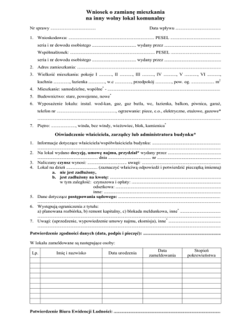 Wniosek o zamianę mieszkania na inny wolny lokal komunalny