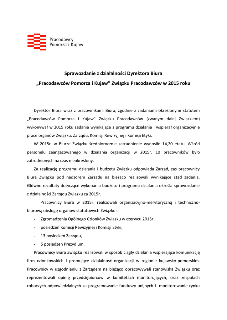 sprawozdanie Dyrektora Biura Pracodawców Pomorza i Kujaw z