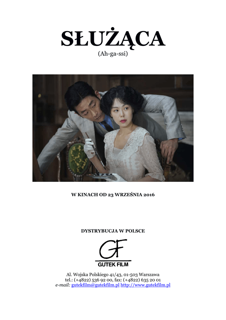 SŁUŻĄCA (Ah-ga-ssi) W KINACH OD 23 WRZEŚNIA 2016 DYSTRYBUCJA W POLSCE Al. Wojska Polskiego 41/43, 01-503 Warszawa tel.: (+4822) 536 92 00, fax: (+4822) 635 20 01 e-mail: [email protected] http://www.gutekfilm.pl SŁUŻĄCA AH-GA-SSI Reżyseria Park Chan-wook Scenariusz Park Chan-wook Chung Seo-kyung Zdjęcia Chung Chung-hoon Muzyka Cho Young-wuk Montaż Kim Jae-bum Kim Sang-bum Scenografia Ryu Seong-hee Kostiumy Cho Sang-kyung W rolach głównych : Kim Min-hee Ha Jung-woo Kim Tae-ri Cho Jin-woong Moon So-ri Kim Hae-sook Panna Hideko Hrabia Fujiwara Sukhui Wuj Kouzuki Ciotka Hideko Pani Sasaki Producenci Park Chan-wook Syd Lim Produkcja Moho Film Yong Film Korea Płd. rok produkcji: 2016 czas trwania: 144 min 2.39:1 – dźwięk 5.1 Kolor OPIS FILMU Najnowszy film Park Chan-wooka, twórcy „Oldboya” i „Pani Zemsty”. Przewrotny thriller oparty na bestsellerowej powieści Sarah Waters „Złodziejka”. Korea, lata 30. XX wieku. Oszust z nizin społecznych postanawia podstępem rozkochać w sobie piękną Japonkę – dziedziczkę wielkiej fortuny – aby przejąć jej majątek. W tym celu umieszcza w jej najbliższym otoczeniu tytułową służącą – posłuszną sobie naciągaczkę, która ma zaskarbić względy milionerki i stać się jej zaufaną powiernicą. „Służąca” to opowieść o trójkącie miłosnym, pożądaniu, seksualnych fantazjach i wyrafinowanej zemście. Widziana z różnych perspektyw intryga z minuty na minutę diametralnie się zmienia, zmierzając ku przewrotnemu finałowi. Park Chan-wook stworzył porażające wizualnie i trzymające do końca w napięciu widowisko, w którym nic nie jest tym, czym się początkowo wydaje. „Służąca” podbiła serca widowni tegorocznego festiwalu w Cannes, gdzie film miał swoją światową premierę. GŁOSY PRASY Inteligentny, zabawny thriller erotyczny. Vanity Fair To kino spełnione formalnie i intelektualnie, a przy okazji dostarczające sporo frajdy. No bo powiedzcie sami, jak często macie okazję zobaczyć scenę erotyczną, w której afrodyzjakiem jest spiłowywanie zęba naparstkiem? Filmweb.pl „Służąca” jest wierna świetnej prozie Sarah Waters, a jednocześnie prezentuje tę historię w bardzo przekonujący i nowatorski sposób. Screen International Park Chan-wook zbudował na ekranie elegancką, szkatułkową opowieść z drobiazgową konstrukcją. Intryga goni intrygę, tajemnica przykrywa inną tajemnicę, błahe szczegóły okazują się mieć nieprzeciętne znaczenie, a niewinne postacie - drugie oblicze. Stopklatka.pl W zasadzie wszystko w tym filmie jest fetyszem. Chan-wook potrafi odnaleźć erotyzm w nieoczekiwanych miejscach. Sight & Sound Film o grze w miłość, niespełnionych erotycznych potrzebach, seksualnych fantazjach. Gazeta Wyborcza Prawie każdy kadr i scena zaskakują. Collider Fantastycznie nakręcona „Służąca” spełnia wszystkie oczekiwania i nieustannie zaskakuje. To zabawny, perwersyjny thriller erotyczny i historia miłosna w jednym. The Hollywood Reporter Mądry, podniecający, aż do przesady zmysłowy. Variety WYWIAD Z REŻYSEREM Co sprawiło, że zdecydował pan, że ten projekt stanie się pana kolejnym filmem? Było podobnie jak przy „Oldboyu” – producent Syd Lim trafił na powieść Sarah Waters, pokazał mi ją i zapytał, „co o tym myślisz?”. Kiedy czytałem tę książkę, a zapewne inni jej czytelnicy mieli podobne odczucia, koniec pierwszej części całkowicie mnie zaskoczył, w dodatku zakochałem się w pełnym szczegółów, bardzo obrazowym stylu autorki. Ale zdecydowałem się na tę historię przede wszystkim ze względu na dwie bohaterki, będące w jej centrum. To niesłychanie ciekawe postaci – jedna z mroczną przeszłością, a druga desperacko uczepiona teraźniejszości. Obie wręcz emanują siłą i wdziękiem. Dlaczego przeniósł pan czas akcji z wiktoriańskiej Anglii do lat 30. XX wieku, kiedy Korea była pod panowaniem Japonii? Ze względów praktycznych. Kiedy zastanowić się nad takimi elementami fabuły jak społeczeństwo klasowe, w którym istnieje zawód służącej, gdzie pojawiają się postaci kolekcjonujące wyjątkowe i rzadkie przedmioty, to wydawało się to jedynym sensownym rozwiązaniem. Był to czas, w którym funkcjonowały jeszcze elementy tradycyjnego stylu życia, ale zaczynała już dominować nowoczesność. Już pańskie poprzednie filmy wyróżniały się wyjątkową scenografią, ale w „Służącej” robi ona niesamowite wrażenie. Dom to ważna przestrzeń. Pani Sasaki, grana przez Kim Hae-sook mówi na samym początku filmu: „Nawet w Japonii nie ma domu, który łączyłby japoński i zachodni styl w taki sposób. To wyraz podziwu, jakim pan Kouzuki darzy Japonię i Anglię”. Kiedy więc bohaterowie wchodzą do japońskiej części domu, muszą zdjąć obuwie, a gdy wracają do jego części inspirowanej zachodnią kulturą, wkładają je z powrotem. Osobowość tego domu jest ważnym elementem. Pokój Hideko znajduje się w jego zachodniej części, więc śpi ona w zwyczajnym łóżku i żyje jak angielskie kobiety. Z kolei w pokoju służącej, znajdującym się w japońskiej części, mieści się oshiire – specjalna szafka na złożone posłanie. Jednak najważniejszą przestrzenią ze względów scenograficznych jest biblioteka. Na zewnątrz to tradycyjna japońska architektura, wewnątrz klasyczna zachodnia biblioteka. W środku znajduje się także część z matami tatami, która zaaranżowana jest na japoński ogród, z białymi kamykami i wodą. Japońskie ogrody mają odtwarzać świat w miniaturze – góry i rzeki, jeziora i lasy. Decyzja Kouzukiego, by zorganizować go w środku domu oznacza, że chce on stworzyć nowy świat wewnątrz swojego królestwa. Także ruchy kamery są w pańskim filmie wyjątkowe. Filmowy dom jest duży, a postaci w tej wielkiej, pustej przestrzeni niewiele. W dodatku w pierwszej części mamy dużo scen widzianych z perspektywy Sukhui