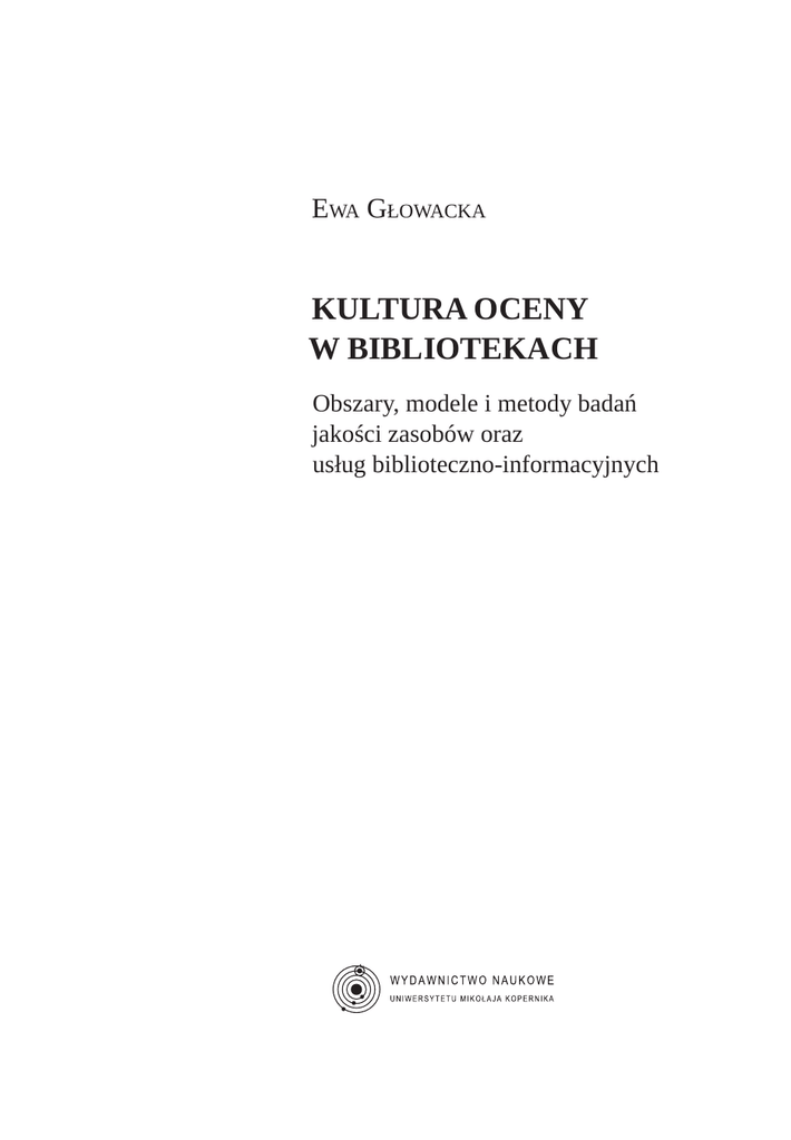 EWA GŁOWACKA KULTURA OCENY W BIBLIOTEKACH Obszary, modele i metody badań jakości zasobów oraz usług bibliotecznoinformacyjnych Recenzent MAŁGORZATA KISILOWSKA Redakcja i korekta MAGDALENA MORDAWSKA Projekt okładki TOMASZ JAROSZEWSKI © Copyright by Wydawnictwo Naukowe Uniwersytetu Mikołaja Kopernika Toruń 2015 ISBN 9788323135012 WYDAWNICTWO NAUKOWE UNIWERSYTETU MIKOŁAJA KOPERNIKA Redakcja: ul. Gagarina 5, 87100 Toruń tel. 56 611 42 95, fax 56 611 47 05 email: [email protected] www.wydawnictwoumk.pl Dystrybucja: ul. Mickiewicza 2/4, 87100 Toruń tel./fax 56 611 42 38 email: [email protected] www.wydawnictwoumk.pl Druk: Drukarnia Wydawnictwa Naukowego UMK Spis treści WSTĘP 7 Rozdział 1 KULTURA OCENY W BIBLIOTEKACH 1.1. Rozwój oceny jakości w bibliotekach 1.2. Wybrane modele oraz metody oceny jakości 1.2.1. Obszary badania jakości bibliotek 1.2.2. Wybrane modele oceny 1.2.3. Wybrane metody jakościowe i metodologia mieszana Podsumowanie 16 20 28 28 32 45 56 Rozdział 2 BADANIE FUNKCJONALNOŚCI ZASOBÓW I USŁUG BIBLIOTECZNOINFORMACYJNYCH Standardy statystyki bibliotecznej Standardy wskaźników funkcjonalności bibliotek 2.3. Rozwój międzynarodowych norm związanych z oceną bibliotek 2.4. Projekty i inicjatywy badania funkcjonalności bibliotek 2.5. Ocena funkcjonalności zasobów cyfrowych tworzonych bądź prenumerowanych przez biblioteki 2.5.1. Ocena prenumerowanych przez biblioteki bibliograficznych baz danych 2.5.2. Ocena funkcjonalności bibliotek i repozytoriów cyfrowych Podsumowanie 58 2.1. 61 2.2. 65 76 81 92 93 100 110 6 Spis treści Rozdział 3 BADANIA JAKOŚCI USŁUG BIBLIOTECZNOINFORMACYJNYCH Metoda ServQUAL LibQUAL+ 3.3. Analiza połączona (ang. conjoint analysis) 3.4. StatsQUAL 3.5. WebQUAL 3.6. TechQUAL+ Podsumowanie 112 3.1. 113 3.2. 122 128 131 137 145 147 Rozdział 4 BADANIA WPŁYWU ZASOBÓW I USŁUG BIBLIOTECZNOINFORMACYJNYCH NA OTOCZENIE SPOŁECZNOEKONOMICZNE Badania wpływu edukacyjnoinformacyjnego bibliotek Badania wpływu kulturalnośrodowiskowego bibliotek 4.3. Wpływ ekonomiczny oraz wartość ekonomiczna usług bibliotecznoinformacyjnych Podsumowanie 149 4.1. 156 4.2. 160 ZAKOŃCZENIE ANEKSY BIBLIOGRAFIA 182 195 197 201 249 Źródła Opracowania 249 WYKAZ SKRÓTÓW STRESZCZENIE SUMMARY 274 254 278 280 Wstęp Współcześnie biblioteki jako instytucje działające w przestrzeni realnej i wirtualnej stoją przed licznymi wyzwaniami, często również zmagają się z pytaniem „czy przetrwamy?”. Na to pytanie nie ma ostatecznej odpowie dzi, jednak istnieją rozliczne możliwości działań, często zresztą wykorzysty wane, aby wzmacniać rolę instytucji i pokazać wartość jej funkcjonowania dla otoczenia społecznego. Jednym z ważnych i kompleksowych sposobów reakcji na tę trudną sytuację jest prowadzenie badań jakości bibliotek. Głównymi celami takich badań są: poznawanie interakcji użytkowników z zasobami, produktami i usługami omawianych instytucji, zbieranie danych i analiza efektywności całego systemu bibliotecznego oraz jakości jego usług. Ważnym elementem jest też ocena wpływu działalności biblioteki na otoczenie społeczne. Wyniki badań dostarczają wiedzy na temat bieżą cych i przyszłych potrzeb oraz aktualnej funkcjonalności i oddziaływania całego systemu. Dzięki temu pomagają w dopasowywaniu się biblioteki oraz działań i postaw jej pracowników do wymagań otoczenia i użytkow ników. Prowadzone badania i oceny muszą uwzględniać tradycyjne oraz cyfrowe zasoby i usługi, środowisko sieciowe, jak również zmieniające się zachowania związane z poszukiwaniem informacji oraz wykorzystaniem zasobów wśród rzeczywistych i potencjalnych klientów bibliotek. Powinny również pozwalać na przyjrzenie się roli placówek bibliotecznych w śro dowisku społecznym. Ważne jest, by prowadzenie badań i ocen bibliotek miało charakter kompleksowy i ciągły, a ich funkcjonowanie opierało się na informacjach płynących z tych analiz. Istotne jest też szczegółowe informowanie beneficjentów biblioteki o rezultatach takich badań i ocen oraz pokazywanie szerokiej opinii publicznej faktycznej wartości społecznej i ekonomicznej oddziaływania tych instytucji. Wymaga to poważnego wysiłku ze strony menadżerów i zespołów pracowniczych bibliotek z różnych względów. Przede wszystkim należy 8 Wstęp nauczyć się stosować metody i narzędzia oceny jakości, a także zrozumieć znaczenie i posiąść umiejętność stałego wprowadzania rezultatów badań do planowania oraz realizacji działań biblioteki. Wejście na nową drogę, każde nowe, szersze zmiany w instytucji wymagają w pewnym zakresie zmiany jej kultury organizacyjnej. W wypadku podjęcia działań opisanych w ni niejszej książce, zmiana ta będzie dotyczyć przede wszystkim włączenia do kultury organizacyjnej bibliotek elementów kultury uczącej się organizacji, co pozwoli łatwiej przejść na drogę kultury oceny. Instytucja ucząca się to „organizacja, która umożliwia i ułatwia uczenie się wszystkim swoim członkom oraz świadomie przekształca siebie oraz kontekst, w którym istnieje”1. Ta składająca się z dwu części definicja mówi, po pierwsze, o rozwoju potencjału każdego członka organizacji, a nie tylko zarządzających na najwyższych szczeblach, po drugie, dotyczy samodzielnego rozwoju organizacji jako organizmu, łącznie z integracją wiedzy każdej z poszczególnych osób z wiedzą ogólną instytucji jako ca łości. Organizacja ucząca się: „świadomie wykorzystuje procesy uczenia się na poziomach indywidualnym, grupowym i systemowym do stałego przekształcania organizacji w kierunku zmierzającym do zwiększenia satys fakcji beneficjentów”2. Uczenie nie służy jedynie organizacji, lecz również jej beneficjentom: użytkownikom, pracownikom, partnerom zawodowym, członkom społeczności. Podkreśla się, że organizacja ucząca się to orga nizacja oparta na wiedzy. Realizacj