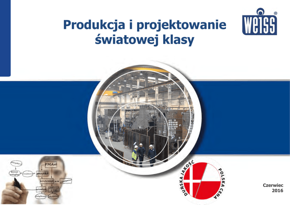 Produkcja i projektowanie światowej klasy Czerwiec 2016 KRÓTKO O HISTORII WEISS 2013 1998 1996 W wyniku zmiany strategii i w ramach wykupu menedżerskiego powstaje Weiss A/S w Danii 1922 Bracia Weiss tworzą Weiss GmbH w Niemczech – firmę dostarczającą systemy spalania Powstaje w Polsce Weiss Sp. z o.o. Powstanie zakładu produkcyjnego w Ostrowcu Świętokrzyskim 2013 Weiss zostaje przejęty przez duńską Grupę BWB Partners w ramach zmian organizacyjnokapitałowych. 2 13 firm wchodzących w skład grupy BWB Partners: • BWB Partners to niezależna duńska grupa inwestycyjna. Działająca w sektorze średnich przedsiębiorstwa. • Jej obroty to ok. 2,6 mld PLN z silnie rosnącym potencjałem • Liczba zatrudnionych sięga 4100. OBROTY 2015 Weiss Polska 60 mln* PLN Weiss Dania 160 mln PLN BWB Partners 2,6 mld PLN Kapitał Zakładowy Weiss Polska: 6.000.000 zł * AV + materiał WYBRANE REALIZACJE WEISS 2 Wyspy Owcze 3 Grenlandia 1 Singapur 2 Kanada 48 USA 52 Norwegia 2 Szkocja 1 Irlandia 45 Finlandia 97 Szwecja 161 Dania 1 Estonia 41 Wielka Brytania 3 Łotwa 8 Litwa 11 Holandia 139 Niemcy 101 Francja 56 Polska 1 Białoruś 3 Czechy 2 Szwajcaria 6 Austria 3 Słowacja 5 Węgry 21 Rumunia 6 Bułgaria * Realizacje powyżej 100.000 EUR 5 Ukraina 2 Rosja KTO NAM ZAUFAŁ KTO NAM ZAUFAŁ KTO NAM ZAUFAŁ ZMIENIAMY POMYSŁY W RZECZYWISTOŚĆ Dajemy umiejętności i narzędzia Ty dostajesz gotowy produkt WEISS – ZAKŁAD PRODUKCYJNY • Produkcja 7 500 m2 • Magazyn zew. 7 000 m2 • Biuro 1 500 m2 • Magazyn wew. 600 m2 • Zakład ogółem: 16 600 m2 Ostrowiec Świętokrzyski (PL) SCHEMAT ORGANIZACYJNY WEISS PL STRUKTURA ZATRUDNIENIA • ZBIORNIKI CIŚNIENIOWE • URZĄDZENIA MECHANICZNE • KONSTRUKCJE STALOWE • RUROCIĄGI PROJEKTOWANIE PRODUKCJA MONTAŻ CERTYFIKATY Certyfikaty wydane przez TÜV Süd: • EN ISO 3834-2. • EN 1090-1 • EN 13480 oraz EN 13445 • Posiadamy ponad 20 kwalifikowanych technologii spawania WPQR zgodnie z normą EN 15614-1 • Kompetencje naszych spawalników potwierdza międzynarodowy certyfikat IWE. • Wszyscy spawacze posiadają certyfikaty zgodne z normą EN 9606-1. KONTROLA JAKOŚCI Pracownicy Weiss posiadają certyfikaty: VT - Visual Inspection PT - Penetrant Testing MT - Magnetic Particle Testing UT – Ultrasonic Testing USŁUGI PROJEKTOWE / ENGINEERING Pracujemy na oprogramowaniu Autodesk I nventor w modelowaniu 3D Autodesk Vault do zarządzania dokumentacją. Projektujemy na zlecenie: • Urządzenia ciśnieniowe • Rurociągi wodne i parowe • Zbiorniki ciśnieniowe • Przenośniki łańcuchowe i śrubowe • Systemy podestów i schodów Zobacz animację kotłowni Więcej informacji w dalszej części prezentacji Z NAMI JEST ŁATWIEJ DZIAŁ OBSŁUGI KLIENTA Rysunki layout i wizualizacje kompletnej kotłowni Schematy funkcjonalne Rysunki fundamentowe z wytycznymi dla firm budowlanych Animacje Z NAMI JEST ŁATWIEJ Dokumentacja projektowa Zarządzanie projektami Dokumentacja montażowa Nadzór nad montażem PROFESJONALNE ZAPLECZE DLA CIEBIE DZIAŁ KONSTRUKCYJNY Projektowanie rurociągów wg EN 13480 – rurociągi parowe, wodne– wraz z doborem armatury oraz obliczeniami naprezen wykonanymi w programie AutoPIPE Projektowanie urządzeń ciśnieniowych zgodnie z PED 97/23/EC (przejście PED 2014/68/UE) włącznie z obliczeniami cieplnymi kotłów i wymienników ciepła. Projektowanie rurociągow odprowadzania spalin, podawania powietrza itp. NASZE MOCNE STRONY DZIAŁ KONSTRUKCYJNY Projektowanie skomplikowanych urządzeń mechanicznych Systemy oczyszczania spalin Projektowanie konstrukcji nośnych wg Eurokodów Projektowanie podestów i schodów do obsługi urządzeń Pneumatyczne układy czyszczenia kotłów Obliczenia izolacji termicznej instalacji i urządzeń wg EN 12241 Projektowanie wymurówki i palenisk betonowych Systemy magazynowania i transportu paliw oraz popiołu SZEROKIE SPEKTRUM USŁUG - DLA WSZYSTKICH TWOICH POTRZEB DZIAŁ DOKUMENTACJI TECHNICZNEJ Przygotowanie końcowej dokumentacji technicznej kotłowni. Tłumaczenia techniczne - na i z jęz.: polski/angielski/duński/rosyjski/białoruski - z jęz. szwedzkiego i norweskiego na polski i angielski USŁUGI PRODUKCYNE • Spawanie konstrukcji (czarna stal, stal nierdzewna) • Spawanie urządzeń ciśnieniowych • Spawanie rurociągów • Przygotowanie elementów do produkcji • • • • • • • • • • • • Wypalanie detali z blach przy użyciu plazmy 2D/3D Cięcie termiczne przy użyciu plazmy 2D/3D Cięcie materiału (profile, pręty) na piłach taśmowych Cięcie blach na gilotynie Gięcie blach na prasie krawędziowej Rolowanie blach (walcowanie) Gięcie rur Frezowanie, toczenie, wiercenie ukosowanie blach Wypalanie cegieł ogniotrwałych Piaskowanie konstrukcji Malowanie konstrukcji PARK MASZYNOWY • Hala produkcyjna 4 nawy, długość max. 98 m szerokość max. 25 m. PARK MASZYNOWY • Suwnica ABUS (udźwig 40 ton) 80% pokrycia hali, wysokość haka 8,5 m • Komora lakiernicza max. gabaryt detalu 10 m x 3,5 m x 4,5 m PARK MASZYNOWY • Plazma 3D CNC Rozmiar stołu: 2D 3000x10000 3D 2500x9000 Grubość blachy max: 30mm PARK MASZYNOWY • Szlifierka taśmowa Szerokość max: 1100 mm Grubość max: 30 mm PARK MASZYNOWY • Walce średnie • Obrotnik Długość max: 3100mm Masa max: 600 kg Grubość max: 25mm Średnica max: 800 mm PARK MASZYNOWY • Maszt spawalniczy Wysokość max: 4000 mm Zasięg ramienia max: 3000 mm PARK MASZYNOWY • Tokarka CNC DMG CXT DMG510eco CNC Średnica max: 465mm Długość max: 1055mm Colchester 2000 Średnica max: 380mm Długość max: 1250mm PARK MASZYNOWY • Prasa krawędziowa Długość max: 3100mm Grubość max: 10mm • Urządzenia spawalnicze KEMPPI 50 sztuk urządzeń spawalniczych PARK MASZYNOWY • Piece do wypalania cegieł ogniotrwałych Rozmiar max: a – 1580mm b – 1200mm c – 500mm • Piły taśmowe do ciecia rur oraz profili Przekrój kołowy Ø max 240mm Przekrój kwadratowy max 235x235mm Przekrój prostok