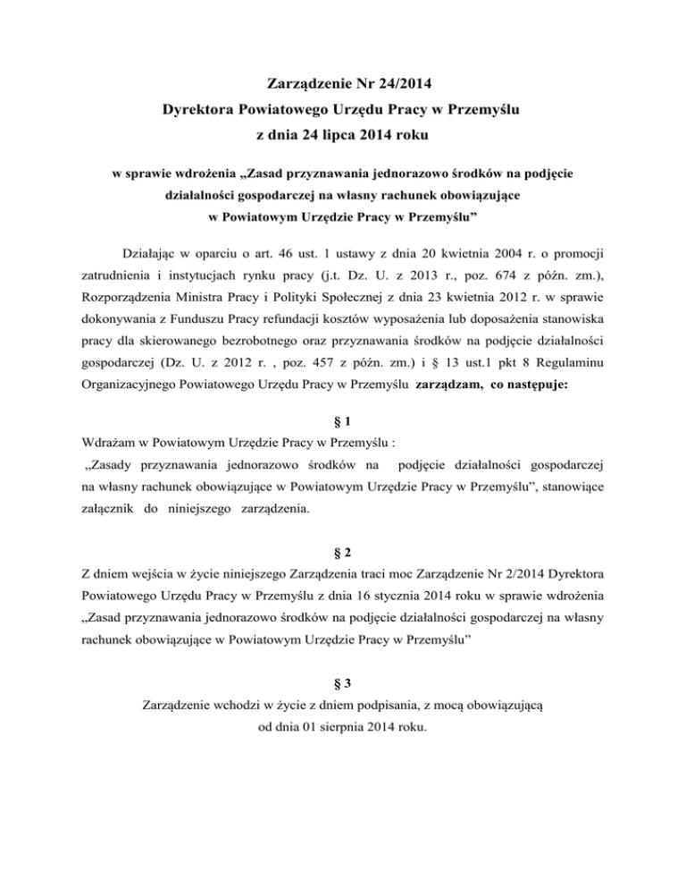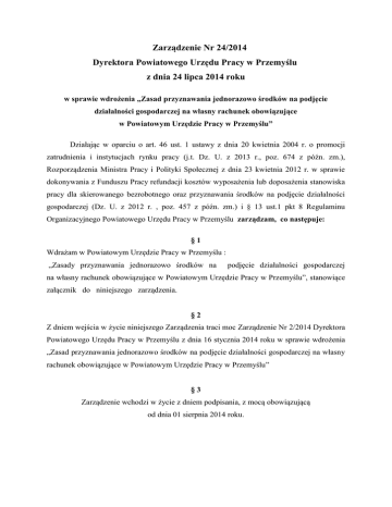 Zarządzenie Nr 24/2014 Dyrektora Powiatowego Urzędu Pracy w