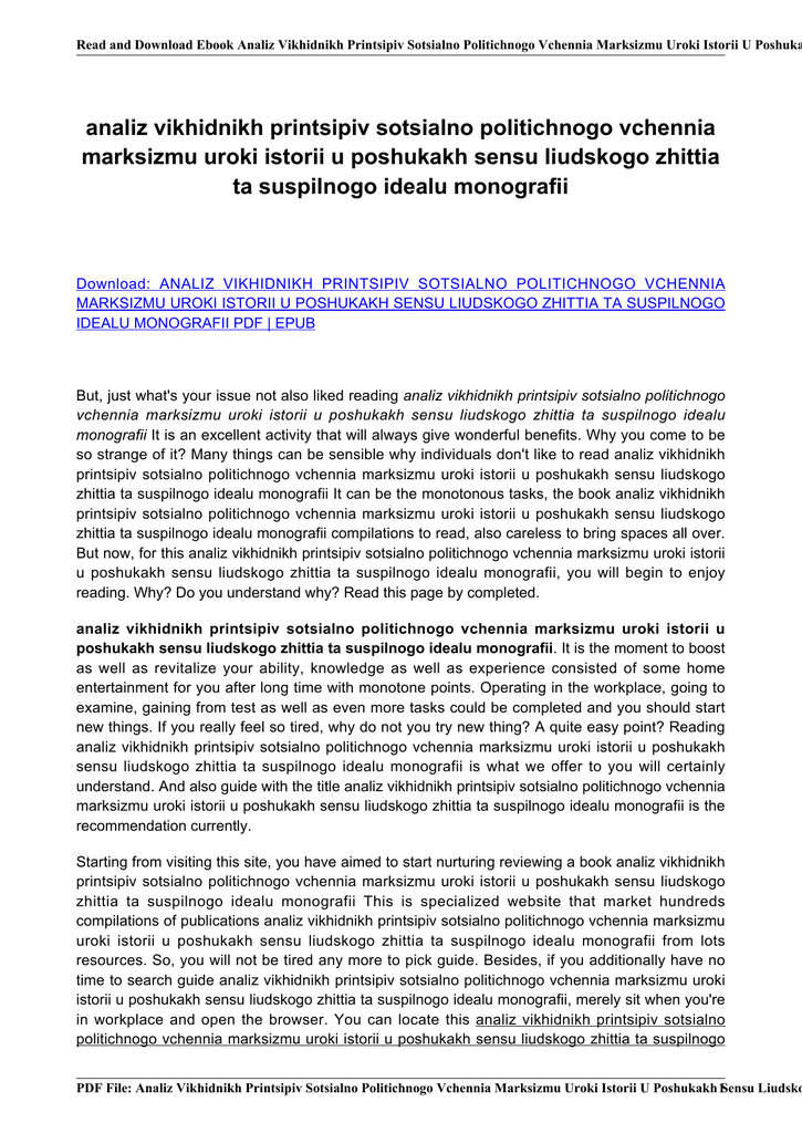 Read and Download Ebook Analiz Vikhidnikh Printsipiv Sotsialno Politichnogo Vchennia Marksizmu Uroki Istorii U Poshuka analiz vikhidnikh printsipiv sotsialno politichnogo vchennia marksizmu uroki istorii u poshukakh sensu liudskogo zhittia ta suspilnogo idealu monografii Download: ANALIZ VIKHIDNIKH PRINTSIPIV SOTSIALNO POLITICHNOGO VCHENNIA MARKSIZMU UROKI ISTORII U POSHUKAKH SENSU LIUDSKOGO ZHITTIA TA SUSPILNOGO IDEALU MONOGRAFII PDF | EPUB But, just what's your issue not also liked reading analiz vikhidnikh printsipiv sotsialno politichnogo vchennia marksizmu uroki istorii u poshukakh sensu liudskogo zhittia ta suspilnogo idealu monografii It is an excellent activity that will always give wonderful benefits. Why you come to be so strange of it? Many things can be sensible why individuals don't like to read analiz vikhidnikh printsipiv sotsialno politichnogo vchennia marksizmu uroki istorii u poshukakh sensu liudskogo zhittia ta suspilnogo idealu monografii It can be the monotonous tasks, the book analiz vikhidnikh printsipiv sotsialno politichnogo vchennia marksizmu uroki istorii u poshukakh sensu liudskogo zhittia ta suspilnogo idealu monografii compilations to read, also careless to bring spaces all over. But now, for this analiz vikhidnikh printsipiv sotsialno politichnogo vchennia marksizmu uroki istorii u poshukakh sensu liudskogo zhittia ta suspilnogo idealu monografii, you will begin to enjoy reading. Why? Do you understand why? Read this page by completed. analiz vikhidnikh printsipiv sotsialno politichnogo vchennia marksizmu uroki istorii u poshukakh sensu liudskogo zhittia ta suspilnogo idealu monografii. It is the moment to boost as well as revitalize your ability, knowledge as well as experience consisted of some home entertainment for you after long time with monotone points. Operating in the workplace, going to examine, gaining from test as well as even more tasks could be completed and you should start new things. If you really feel so tired, why do not you try new thing? A quite easy point? Reading analiz vikhidnikh printsipiv sotsialno politichnogo vchennia marksizmu uroki istorii u poshukakh sensu liudskogo zhittia ta suspilnogo idealu monografii is what we offer to you will certainly understand. And also guide with the title analiz vikhidnikh printsipiv sotsialno politichnogo vchennia marksizmu uroki istorii u poshukakh sensu liudskogo zhittia ta suspilnogo idealu monografii is the recommendation currently. Starting from visiting this site, you have aimed to start nurturing reviewing a book analiz vikhidnikh printsipiv sotsialno politichnogo vchennia marksizmu uroki istorii u poshukakh sensu liudskogo zhittia ta suspilnogo idealu monografii This is specialized website that market hundreds compilations of publications analiz vikhidnikh printsipiv sotsialno politichnogo vchennia marksizmu uroki istorii u poshukakh sensu liudskogo zhittia ta suspilnogo idealu monografii from lots resources. So, you will not be tired any more to pick guide. Besides, if you additionally have no time to search guide analiz vikhidnikh printsipiv sotsialno politichnogo vchennia marksizmu uroki istorii u poshukakh sensu liudskogo zhittia ta suspilnogo idealu monografii, merely sit when you're in workplace and open the browser. You can locate this analiz vikhidnikh printsipiv sotsialno politichnogo vchennia marksizmu uroki istorii u poshukakh sensu liudskogo zhittia ta suspilnogo PDF File: Analiz Vikhidnikh Printsipiv Sotsialno Politichnogo Vchennia Marksizmu Uroki Istorii U Poshukakh 1Sensu Liudsko Read and Download Ebook Analiz Vikhidnikh Printsipiv Sotsialno Politichnogo Vchennia Marksizmu Uroki Istorii U Poshuka idealu monografii inn this web site by linking to the net. Download: ANALIZ VIKHIDNIKH PRINTSIPIV SOTSIALNO POLITICHNOGO VCHENNIA MARKSIZMU UROKI ISTORII U POSHUKAKH SENSU LIUDSKOGO ZHITTIA TA SUSPILNOGO IDEALU MONOGRAFII PDF | EPUB PDF File: Analiz Vikhidnikh Printsipiv Sotsialno Politichnogo Vchennia Marksizmu Uroki Istorii U Poshukakh 2Sensu Liudsko Read and Download Ebook Analiz Vikhidnikh Printsipiv Sotsialno Politichnogo Vchennia Marksizmu Uroki Istorii U Poshuka ANALIZ VIKHIDNIKH PRINTSIPIV SOTSIALNO POLITICHNOGO VCHENNIA MARKSIZMU UROKI ISTORII U POSHUKAKH SENSU LIUDSKOGO ZHITTIA TA SUSPILNOGO IDEALU MONOGRAFII PDF Get the connect to download this analiz vikhidnikh printsipiv sotsialno politichnogo vchennia marksizmu uroki istorii u poshukakh sensu liudskogo zhittia ta suspilnogo idealu monografii and begin downloading and install. You could desire the download soft documents of guide analiz vikhidnikh printsipiv sotsialno politichnogo vchennia marksizmu uroki istorii u poshukakh sensu liudskogo zhittia ta suspilnogo idealu monografii by going through various other activities. Which's all done. Currently, your count on review a publication is not consistently taking and lugging guide analiz vikhidnikh printsipiv sotsialno politichnogo vchennia marksizmu uroki istorii u poshukakh sensu liudskogo zhittia ta suspilnogo idealu monografii almost everywhere you go. You could save the soft data in your gizmo that will never ever be far away and read it as you such as. It is like reviewing story tale from your device after that. Currently, begin to like reading analiz vikhidnikh printsipiv sotsialno politichnogo vchennia marksizmu uroki istorii u poshukakh sensu liudskogo zhittia ta suspilnogo idealu monografii and also get your new life! PDF File: Analiz Vikhidnikh Printsipiv Sotsialno Politichnogo Vchennia Marksizmu Uroki Istorii U Poshukakh 3Sensu Liudsko Read and Download Ebook Analiz Vikhidnikh Printsipiv Sotsialno Politichnogo Vchennia Marksizmu Uroki Istorii U Poshuka Based upon the analiz vikhidnikh printsipiv sotsialno politichnogo vchennia marksizmu uroki istorii u poshukakh sensu liudskogo zhittia ta suspilnogo idealu monografii information that our company offer, you may not be so baffled to be here and to be member. Get now the soft documents of this book analiz vikhid