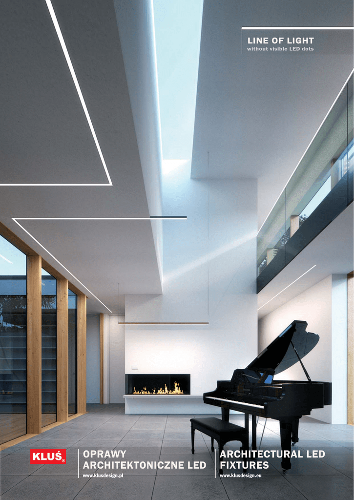 OPRAWY ARCHITEKTONICZNE LED ARCHITECTURAL LED FIXTURES www.klusdesign.pl www.klusdesign.eu PROFILE ARCHITEKTONICZNE DLA LED - PODSTAWOWE INFORMACJE ARCHITECTURAL PROFILES FOR LED FIXTURES - BASIC INFORMATION PROFILE DO WPUSTÓW / PROFILES FOR GROOVES 51 mm (2.01”) LESTO 46 mm (1.81”) LARKO REF. B5552 25 mm (0.98”) 25 mm (0.98”) REF. B5551 26 mm (1.02”) 26 mm (1.02”) REF. B5554 REF. B5556 26 mm (1.02”) GIP REF. B4574 7,5 mm (0.3”) GIZA 24,5 mm (0.96”) LIPOD 10 mm (0.39”) PROFILE MONTOWANE NA POWIERZCHNI / SURFACE MOUNTED PROFILES 26 mm (1.02”) 7,5 mm (0.3”) 26 mm (1.02”) 26 mm (1.02”) PROFIL TECHNICZNY / TECHNICAL PROFILE LOKOM REF. B5555 REF. B5553 30 mm (1.18”) 25 mm (0.98”) 29 mm (1.14”) TEKNIK 30 mm (1.18”) 66 mm (2.6”) 26 mm (1.02”) ZAŚLEPKI / END CAPS zaślepka / end cap LESTO zaślepka / end cap LARKO zaślepka / end cap LIPOD zaślepka / end cap GIZA REF. 24008 REF. 24006 REF. 24004 REF. 24007 OSŁONKA / COVER HS22 mleczna / frosted REF. 17011 GIP-L REF. 00306 GIP-K REF. 00307 zaślepka / end cap TEKNIK zaślepka / end cap LOKOM REF. 24002 REF. 24005 AKCESORIA DO MONTAŻU PROFILI / MOUNTING ACCESSORIES FOR PROFILES HS22 transparent REF. 17022 GP REF. 00293 KMA REF. 00838 PL Profile architektoniczne dla opraw LED – przeznaczone są do montażu w sufitach zatrzask / clip TEKNIK REF. 24003 EN Architectural profiles for LED fixtures – dedicated to mounting on ceilings and i ścianach z płyt kartonowo-gipsowych. Ich wysokość została tak zaprojektowana aby przy diodach o rozstawie 15 mm i mlecznej osłonce HS 22 świeciły jednolitą linią światła. Źródło światła to jeden lub dwa paski LED o szerokości 10 mm. Montaż do podłoża odbywa się za pośrednictwem sprężyn montażowych. Podczas montażu wszystkie profile, oprawy wymagają wcześniejszego doprowadzenia do nich przewodów zasilających. Zasilacze mogą być umieszczane luzem na lewej stronie stropów lub w grubości ścianek. drywall. Their height was designed the way that they can produce a single line of light with LEDs with 15mm spacing and a frosted cover HS 22. The source of light is one or two 10 mm-wide LED strips. Surface mounting is perfomed with the use of mounting springs. During the mounting all profiles-fixtures should have power cables led to them beforehand. Power supplies can be placed loose on the left side of the ceiling or within the walls. Profile architektoniczne Długość: 2m (standard), 3m *, 3 - 6m (na specjalne zamówienie) Wykończenie powierzchni: anodowany w kolorze aluminium Architectural profiles Length: 2m (standard), 3m *, 3 - 6m (special order) Surface finishing: anodized Osłonka Długość: 2m (standard), 3m * Wykończenie powierzchni: mleczna / przezroczysta, bardziej sztywna, płaska Cover Length: 2m (standard), 3m * Surface finishing: frosted / transparent, more rigid, flat Zaślepka Materiał: tworzywo Kolor: jasny szary End cap Material: plastic Color: light gray Akcesoria do montażu profili Mounting accessories for profiles Sprężyny powierzchniowe GP – mocują oprawy, profile przewidziane do powierzchni (nie zagłębione w tak zwanym gnieździe). Wymagana minimalna grubość płaszczyzny stanowiącej powierzchnię do mocowania to 10 mm. Surface spring GP – fix the profiles, fixtures designed for surface mounting (not embedded in the so - called slot.) The minimum required thickness of the surface, i.e. mounting surface is 10 mm. Sprężyny do wpustów KMA – mocują oprawy z kołnierzem, przewidziane do wpustów i gniazd. Springs for grooves KMA – they fix the profiles together with the collar, designed for grooves and slots. Zatrzask TEKNIK – element z tworzywa pasujący do zaczepu małego, w profilach KLUŚ. Przeznaczony jest do montowania profili na „klik” do profilu TEKNIK. TEKNIK clip – a plastic element suitable for a small fastener in KLUS profiles. It is designed for the ‘click’ mounting of profiles to the TEKNIK profile. * Dostępne po uzgodnieniu z działem handlowym firmy KLUŚ / available by arrangement with the sales department of KLUŚ. PROFILE ARCHITEKTONICZNE DLA LED - PROFILE DO WPUSTÓW ARCHITECTURAL PROFILES FOR LED FIXTURES - PROFILES FOR GROOVES LESTO REF. B5551 LARKO REF. B5552 Sprężyny do wpustów KMA Springs for grooves KMA Dół profilu LARKO wystaje poza lewą płaszczyznę płyt kartonowo-gipsowych, kolidując z elementemi konstrukcji. Montaż w poprzek konstrukcji sufitu wymaga dołożenia dystansowych „pasków” kartonowo-gipsowych. Dół profilu LESTO nie koliduje z konstrukcją nośną sufitu lub ścianki. Pozwala to w dowolnym kierunku montować oprawy zbudowane z tego profilu, do istniejących już ścian i sufitów. The bottom side of the LARKO profile extends beyond the left side of the drywalls, interfering with the construction elements. Mounting across the ceiling structure calls for the use of additional spacer ‘bars’. The bottom side of the LESTO profile does not interfere with the support structure of the ceiling or drywall. This allows mounting of the fixtures based on this profile in any direction to the existing walls and ceilings. PROFILE ARCHITEKTONICZNE DLA LED - PROFILE MONTOWANE NA POWIERZCHNI ARCHITECTURAL PROFILES FOR LED FIXTURES - SURFACE MOUNTED PROFILES LIPOD REF. B5554 GIZA REF. B5556 GIP REF. B4574 Sprężyny powierzchniowe GP Surface spring GP ø10mm 12V Przykład montażu profilu GIZA z wykorzystaniem systemu mocowań KLUŚ, w wersji z regulacją kąta świecenia. Example of GIZA profile mounting with the use of KLUS mounting system, version with the regulation of lightbeam angle. Profil GIP podwieszony na zawieszkach DP. GIP profile suspended on DP fasteners. PROFILE ARCHITEKTONICZNE DLA LED - PROFIL TECHNICZNY ARCHITECTURAL PROFILES FOR LED FIXTURES - TECHNICAL PROFILE TEKNIK REF. B5555 TEKNIK – profil techniczny przeznaczony do budowy precyzyjnych szczelin (wpustów) w płaszczyznach ścian i sufitów kartonowo-gipsowych, dla osadzani
