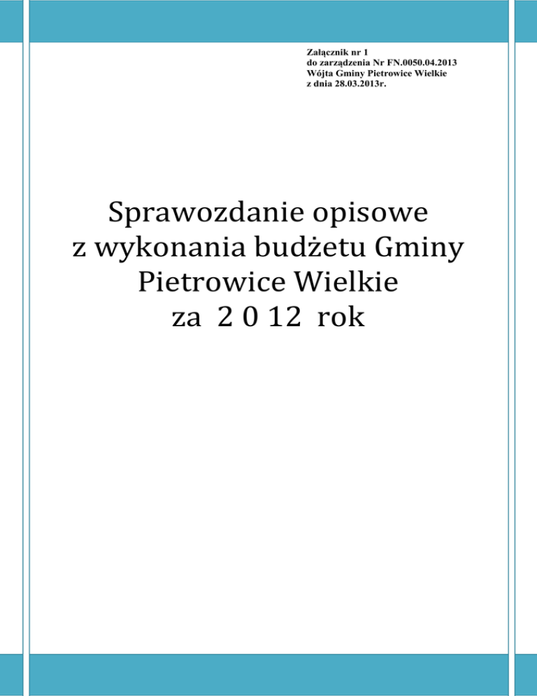 Sprawozdanie opisowe z wykonania budzetu za rok 2012