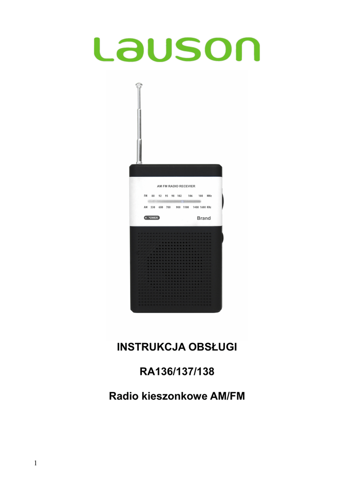 INSTRUKCJA OBSŁUGI RA136/137/138 Radio kieszonkowe AM/FM