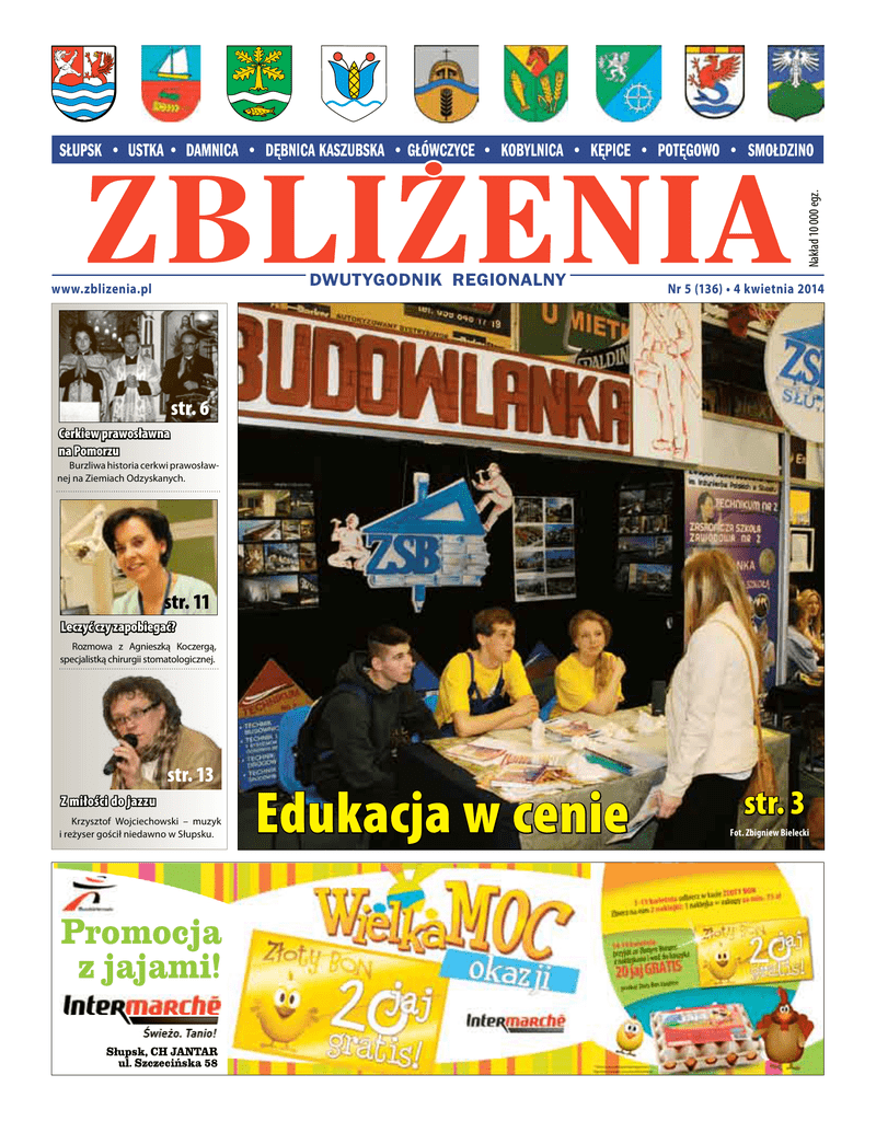 Nakład 10 000 egz. www.zblizenia.pl Nr 5 (136) • 4 kwietnia 2014 str. 6 Cerkiew prawosławna na Pomorzu Burzliwa historia cerkwi prawosławnej na Ziemiach Odzyskanych. str. 11 Leczyć czy zapobiegać? Rozmowa z Agnieszką Koczergą, specjalistką chirurgii stomatologicznej. str. 13 Z miłości do jazzu Krzysztof Wojciechowski – muzyk i reżyser gościł niedawno w Słupsku. Edukacja w cenie str. 3 Fot. Zbigniew Bielecki SŁUPSK/REKLAMA 4 kwietnia 2014 Wyróżnieni niepełnosprawni sportowcy W Warszawie odbył się finał pierwszego w historii plebiscytu 40-lecia na 10 najwybitniejszych sportowców z niepełnosprawnością. Honorowy patronat nad galą objęła pierwsza dama RP – małżonka prezydenta Anna Komorowska. 4 kwietnia br. podczas uroczystej gali w Centrum Olimpijskim w Warszawie ogłoszono nazwiska zwycięzców zorganizowanego przez Fundację Sedeka plebiscytu 40-lecia na 10 najwybitniejszych sportowców z niepełnosprawnością. To wyjątkowe spotkanie zawodników, zarówno tych, którzy zdobyli medale podczas igrzysk paraolimpijskich wiele lat temu, jak i sportowców, którzy na podium stanęli niedawno. W nominowanej 40-ce znaleźli się także słupscy paraolimpijczycy: na miejscu 7. Romuald Rasiak - srebrny medalista w piłce siatkowej z Arnhem/Holandia 1980 rok i na miejscu 36. Maria Sobiech - brązowa medalistka w rzucie oszczepem z Seulu 1988 rok. W pierwszym etapie internetowego plebiscytu wzięło udział blisko 30.000 osób. Popularność plebiscytu uwidacznia, że aktywność sportowa osób z niepełnosprawnością jest ważnym i potrzebnym tematem. - Dla wielu osób sport jest skuteczną formą rehabilitacji, zarówno fizycznej, jak i społecznej. Organizując plebiscyt 40-lecia chcieliśmy przypomnieć sukcesy polskich paraolimpijczyków, których postawy mogą być źródłem inspiracji i siły, szczególnie dla osób, które z powodu choroby lub niepełnosprawności straciły wiarę w siebie i sens życia – powiedział Stanisław Kowalski, założyciel i prezes Fundacji Sedeka. Plebiscyt wspierają: Polski Związek Sportu Niepełnosprawnych „Start”, Polski Komitet Paraolimpijski, Akademie Wychowania Fizycznego oraz organizacje działające na rzecz osób niepełnosprawnych. (l) AKTUALNOŚCI/REKLAMA 4 kwietnia 2014 Edukacja w cenie www.bezdomni W słupskiej hali „Gryfia” odbyły się Targi Edukacyjne, które zorganizował Urząd Miejski w Słupsku wspólnie z Urzędem Marszałkowskim Województwa Pomorskiego w Gdańsku w ramach projektu pn.: „Pomorskie dobry kurs na edukację. Szkolnictwo zawodowe w regionie a wyzwania rynku pracy”. Projekt jest współfinansowany ze środków Unii Europejskiej w ramach Europejskiego Funduszu Społecznego. Specjalnie z myślą o absolwentach gimnazjów, aby ułatwić im dokonanie wyboru szkoły ponadgimnazjalnej, opracowany został Informator na rok szkolny 2014/2015 o szkołach ponadgimnazjalnych prowadzonych przez miasto Słupsk, z którym gimnazjaliści mogli się zapoznać podczas targów. Szkoły średnie coraz bardziej odczuwają skutki niżu demograficznego. W tym roku gimnazja opuści mniej uczniów niż przed rokiem. Łącznie z terenu miasta i powiatu słupskiego Podczas targów uczniowie mogli zapoznać się z ofertą edukacyjną szkół ponadgimnazjalnych miasta Słupska oraz prowadzonych przez Radę Powiatu Słupskiego, a także z zasadami rekrutacji do szkół ponadgimnazjalnych oraz naboru elektronicznego. Gimnazjaliści mogli skorzystać z rad i pomocy doradców zawodowych z Poradni Psychologiczno-Pedagogicznej w Słupsku, którzy podczas spotkań pomagali w podjęciu decyzji o wyborze szkoły. Swoją ofertę zaprezentowało również Środkowopomorskie Centrum Kształcenia Ustawicznego w Słupsku. W trakcie targów odbyła się oficjalna premiera filmu promującego szkolnictwo zawodowe, przygotowanego przez Wydział Oświaty, Kultury i Sportu Urzędu Miejskiego w Słupsku we współpracy ze szkołami zawodowymi Słupska, zrealizowanego przez DWUTYGODNIK Nakład: 10000 egz. ISSN 138-0745 REGIONALNY Wydawca: AUH FOTECH 76-200 Słupsk al. Sienkiewicza 1/2 Druk: „RONDO” Koszalin Zespół Szkół Technicznych w Słupsku. Uczestnicy mogli też obejrzeć film przygotowany przez Urząd Marszałkowski Województwa Pomorskiego, podkreślający wagę szkolnictwa zawodowego – jako niezwykle istotnego elementu kształcenia kadr dla rozwoju gospodarki województwa pomorskiego. Imprezę wzbogaciły pokazy spotów rekla- nieco ponad półtora tysiąca absolwentów. Nic mowych przygotowanych przez szkoły po- więc dziwnego, że szkoły ponadgimnazjalne nadgimnazjalne, promujących ich ofertę tak bardzo zabiegają o uczniów. (l) edukacyjną na rok szkolny 2014/2015. Fot. Zbigniew Bielecki Redaktor naczelna Leokadia Lubiniecka Redakcja i Biuro Reklamy: Zewsząd słychać głosy o braku pieniędzy. Niemal na wszystko. Na opiekę zdrowotną, na edukację, na pomoc społeczną. Na inwestycje. A ja twierdzę, że Polska to bogaty kraj. Bardzo bogaty. Tyle, że źle i głupio zarządzany, nie po gospodarsku. Bo gdzie indziej marnotrawi się tyle pieniędzy co u nas? Rodzice niepełnosprawnych dzieci koczują w sejmie i domagają się podwyżki żebraczych zasiłków, aby móc zrezygnować z pracy zawodowej i opiekować się swoimi pociechami. Opiekunowie niepełnosprawnych dorosłych koczują przed sejmem i żądają godnych zasiłków. Gdyby jedni i drudzy oddali swoich bliskich do zakładów opiekuńczych, wydatki z budżetu państwa na ich utrzymanie wzrosłyby natychmiast i to znacznie. Ciekawe, skąd rząd wziąłby na to pieniądze. Czy tak, jak teraz, z pieniędzy przeznaczonych na remonty dróg lokalnych? Tymczasem „Dziennik Gazeta Prawna” ujawnił, że resort pracy i opieki społecznej stworzył za prawie 50 milionów złotych (!) portal internetowy dla bezdomnych i potrzebujących wsparcia najuboższych rodaków. A pan minister Kosiniak-Kamysz nabył sobie służbowy komputer za kilkanaście ty