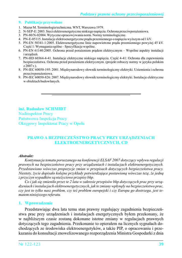 39 Nr 122-123 inż. Radosław SCHMIDT Nadinspektor Pracy