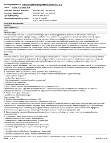 Sylabus przedmiotu Publiczne prawo gospodarcze ()