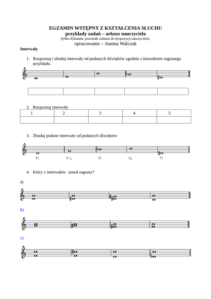 EGZAMIN WSTĘPNY Z KSZTAŁCENIA SŁUCHU przykłady zadań