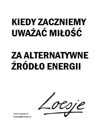 KIEDY ZACZNIEMY UWAŻAĆ MIŁOŚĆ ZA ALTERNATYWNE ŹRÓDŁO ENERGII www.loesje.pl [email protected]