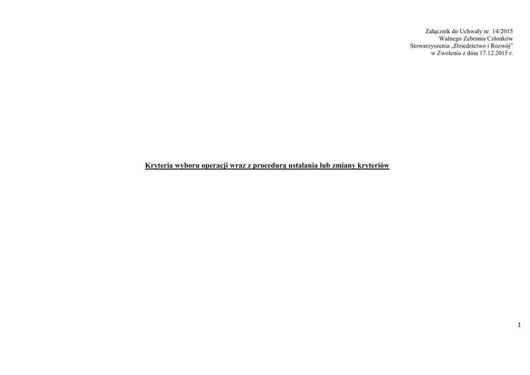 Kryteria wyboru operacji wraz z procedurą ustalania lub zmiany