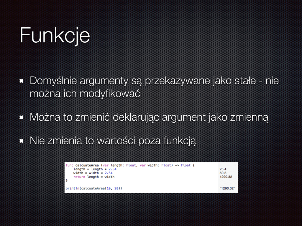 Domyślnie argumenty są przekazywane jako stałe