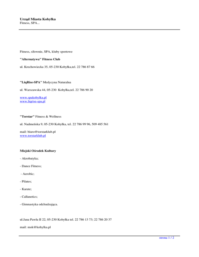 Fitness, SPA... - Urząd Miasta Kobyłka