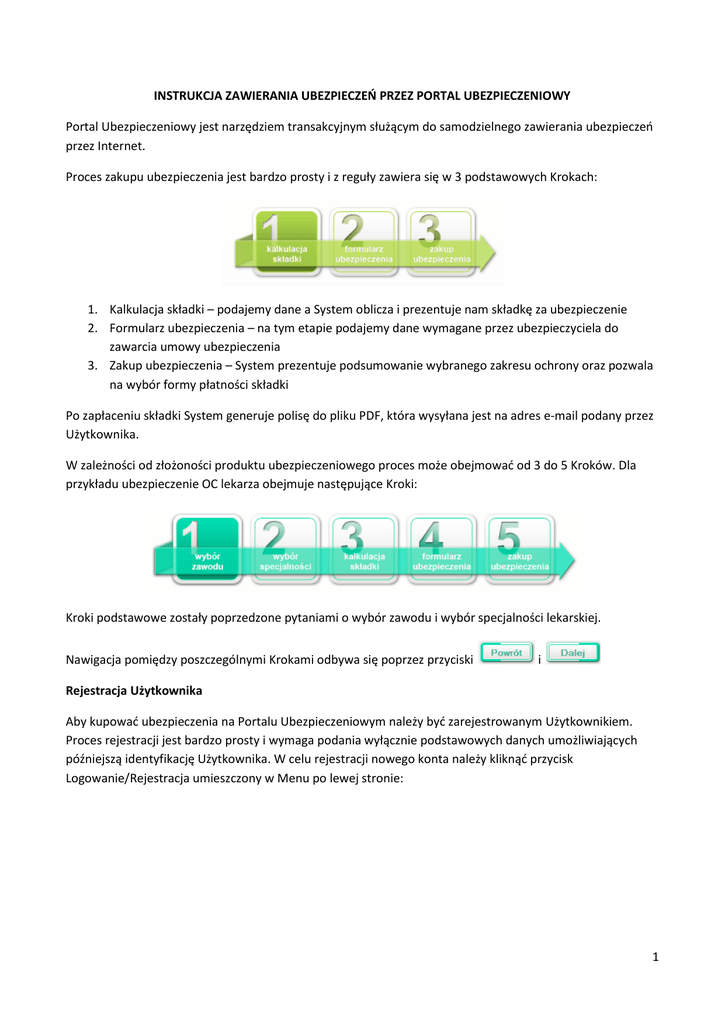 1 INSTRUKCJA ZAWIERANIA UBEZPIECZEŃ PRZEZ