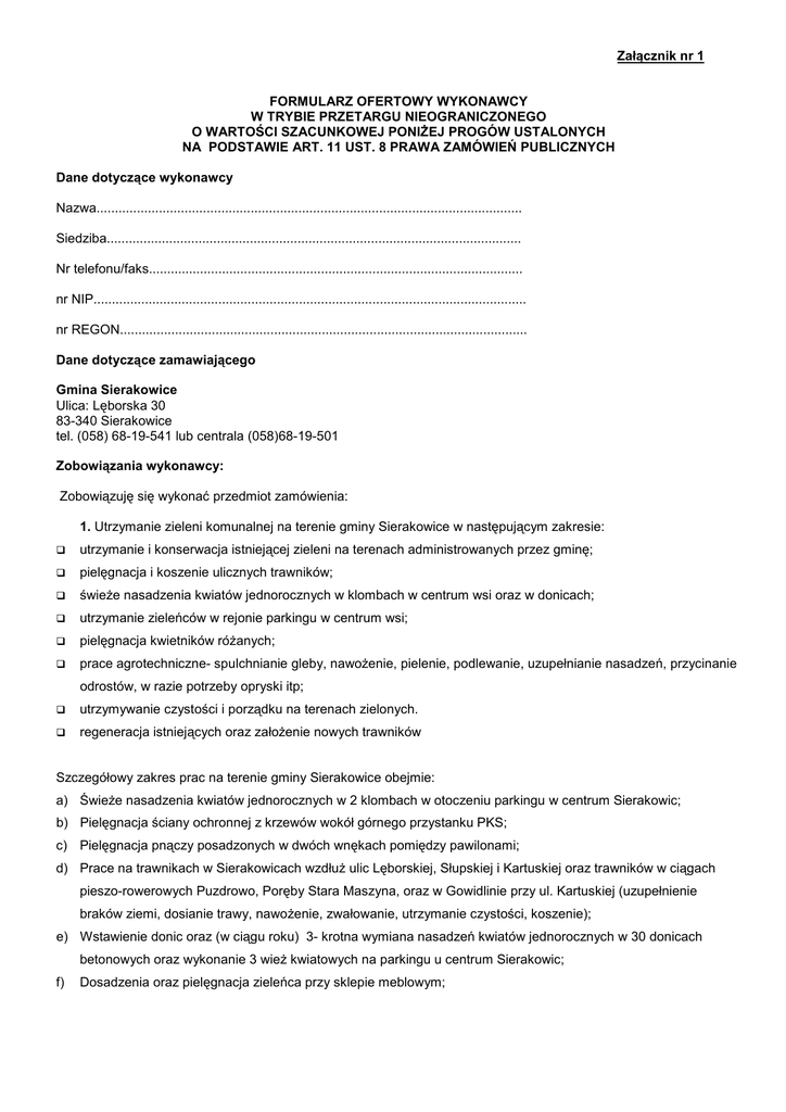 formularz ofertowy - Gmina Sierakowice