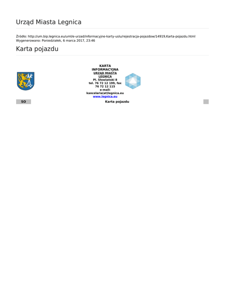 Urząd Miasta Legnica Karta pojazdu