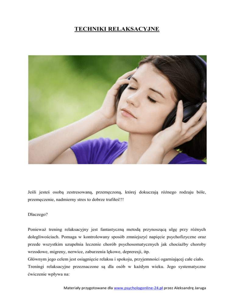 TECHNIKI RELAKSACYJNE - Twój Psycholog online!