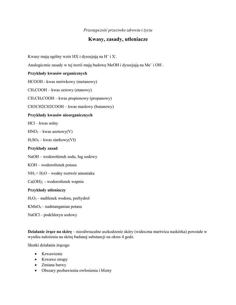 Kwasy, zasady, utleniacze. Przestępczość przeciwko zdrowiu i życiu