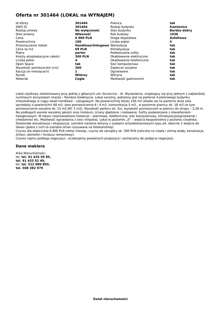 Oferta nr 301464 (LOKAL na WYNAJEM)