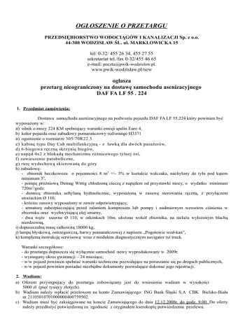ogłoszenie o przetargu - PWiK Wodzisław Śląski