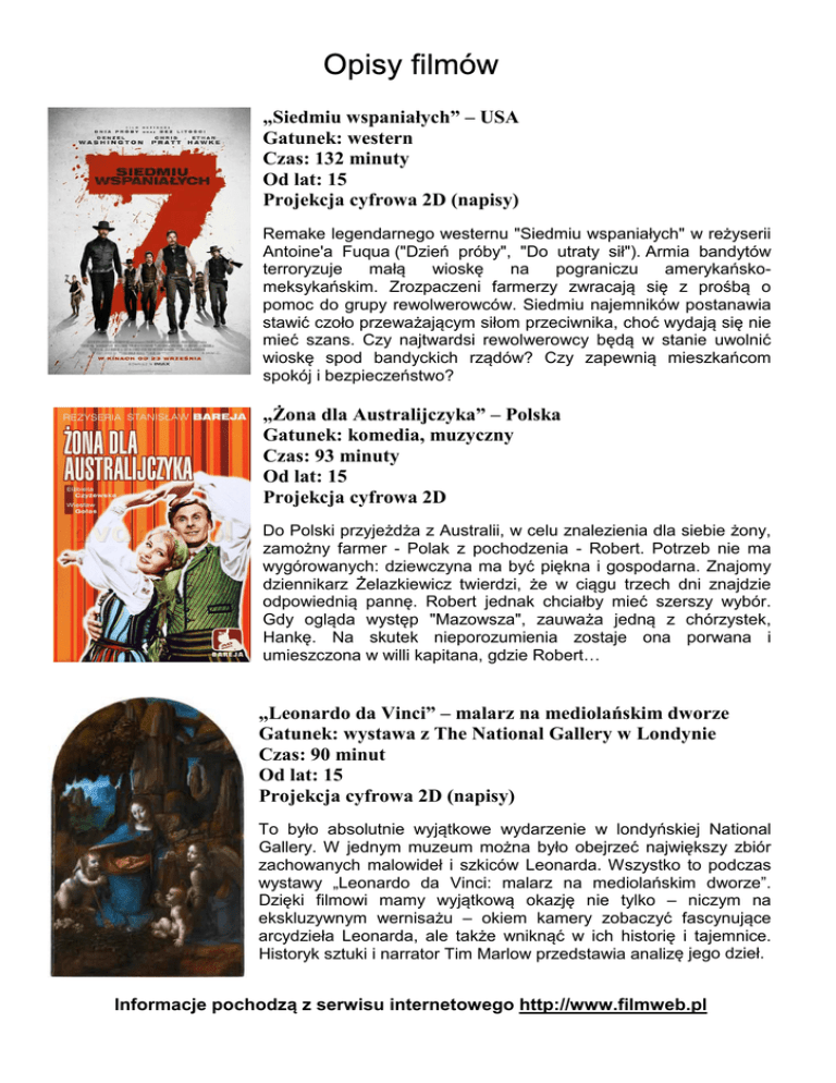 Opisy filmów