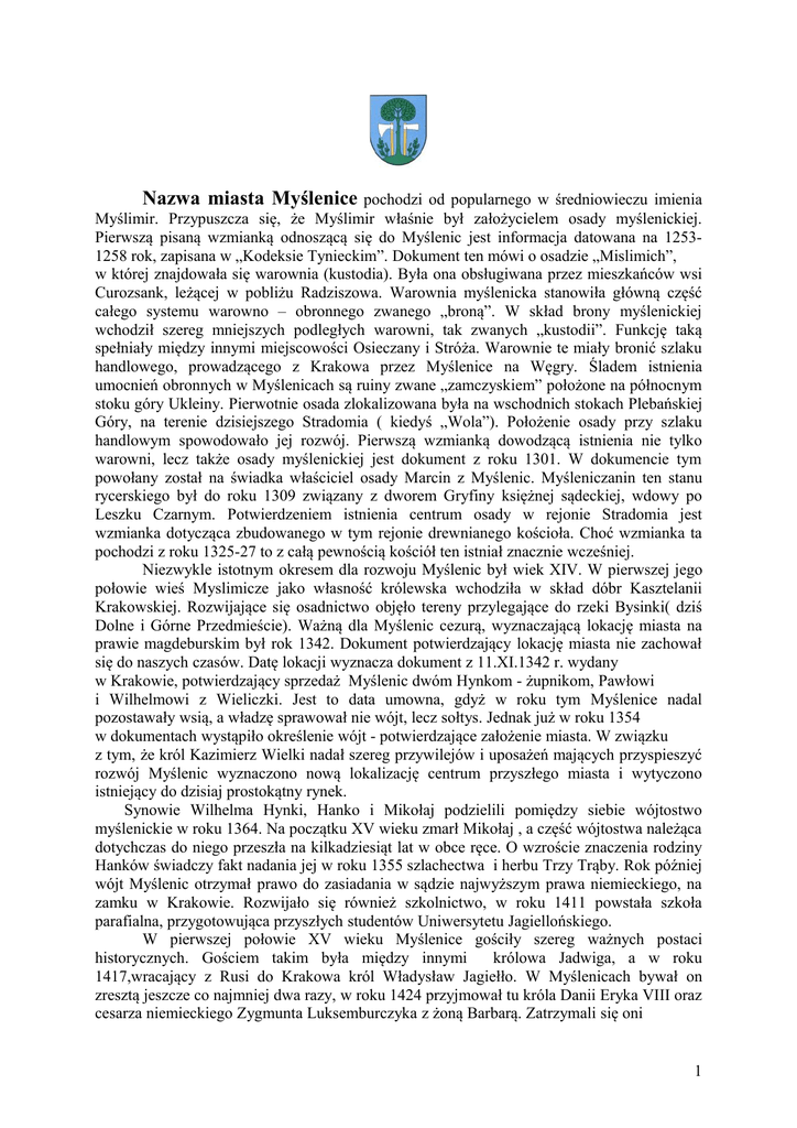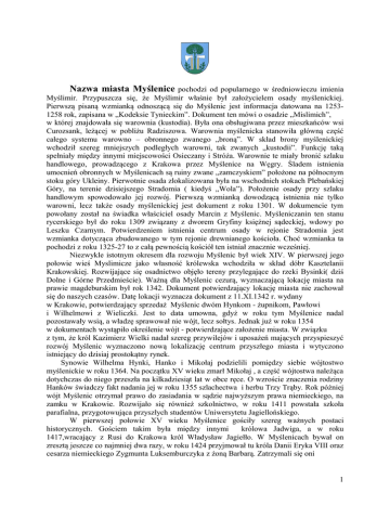 Nazwa miasta Myślenic pochodzi od popularnego w średniowiecz