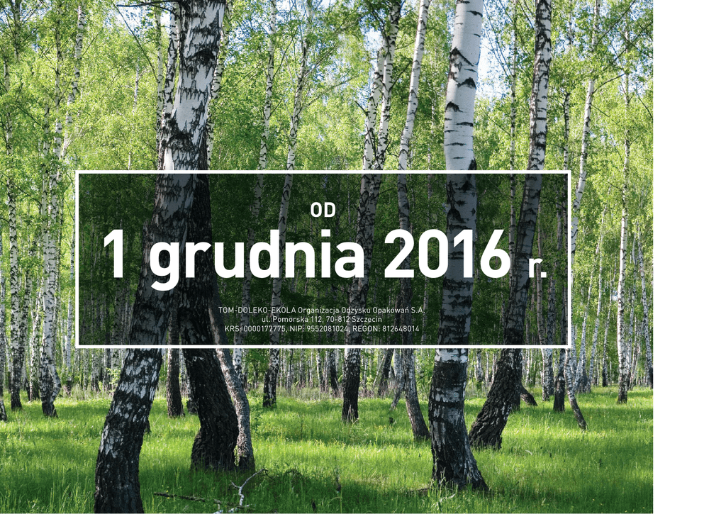 OD 1 grudnia 2016 r. TOM-DOLEKO-EKOLA Organizacja Odzysku Opakowań S.A. ul. Pomorska 112, 70-812 Szczecin KRS: 0000177775, NIP: 9552081024, REGON: 812648014 Co wprowadzamy Z dniem 1 grudnia 2016 r. nastąpiło połączenie poprzez przeniesienie majątków spółek przejmowanych: DOL-EKO Organizacja Odzysku Opakowań S.A. oraz Organizacja Odzysku Odpadów i Opakowań EKOLA S.A. na spółkę przejmującą TOM Organizacja Odzysku Opakowań S.A. Z dniem połączenia została zarejestrowana zmiana nazwy spółki przejmującej: TOM-DOLEKO-EKOLA Organizacja Odzysku Opakowań S.A. UJEDNOLICONA OBSŁUGA POSZERZONA OFERTA USŁUG UPROSZCZONA STRUKTURA OFERTOWA 520 000 000 PLN OBROTU Na co złożyło się 405.000,00 ton ekologicznie zagospodarowanych surowców wtórnych oraz 60.000,00 ton stali i zbrojeń budowlanych. Co zyskujesz Zaplecze rozwiązań w zakresie kompleksowej gospodarki odpadami w firmie, które oferują pozostałe podmioty Grupy TOM. ROZLICZANIE WPROWADZAJĄCYCH OPAKOWANIA Realizacja obowiązku odzysku i recyklingu opakowań. ROZLICZANIE WPROWADZAJĄCYCH OLEJE, PREPARATY SMAROWE I OPONY Przejęcie i wykonywanie obowiązku odzysku i recyklingu odpadów opakowaniowych i poużytkowych (oleje, preparaty smarowe, opony). REALIZACJA PUBLICZNYCH KAMPANII EDUKACYJNYCH Przejęcie i wykonywanie obowiązku finansowania Publicznych Kampanii Edukacyjnych pełną sprawozdawczość z Urzędem Marszałkowskim w zakresie przejętego obowiązku (OŚ-OP1, sprawozdania OPAK). ROZLICZANIE WPROWADZAJĄCYCH BATERIE I AKUMULATORY Realizacja obowiązków Przedsiębiorców w zakresie zbierania, przetwarzania, odzysku i unieszkodliwiania zużytych baterii i akumulatorów. ROZLICZANIE WPROWADZAJĄCYCH OPAKOWANIA WIELOMATERIAŁOWE Realizacja ustawowych obowiązków związanych z odzyskiem opakowań wielomateriałowych - w szczególności przez możliwość wykonania za przedsiębiorców wielu obowiązków w zakresie zapewnienia zbiórki, odzysku i recyklingu odpowiednich odpadów opakowaniowych, jak również w zakresie przygotowania wszelkich wymaganych sprawozdań związanych z tym obowiązkiem. OBSŁUGA MERYTORYCZNA ORAZ POŚREDNICTWO DLA WPROWADZAJĄCYCH OPAKOWANIA PO ŚRODKACH NIEBEZPIECZNYCH Obsługa merytoryczna ustawowych obowiązków związanych z odzyskiem opakowań po środkach niebezpiecznych - w szczególności przez możliwość wykonania za przedsiębiorców wielu obowiązków w zakresie zapewnienia zbiórki, odzysku i recyklingu odpowiednich odpadów opakowaniowych, jak również w zakresie przygotowania wszelkich wymaganych sprawozdań związanych z tym obowiązkiem. ROZLICZANIE WPROWADZAJĄCYCH SPRZĘT Realizacja procesu związanego z organizowaniem zbierania oraz przetwarzania, odzysku i recyklingu zużytego sprzętu elektrycznego i elektronicznego. ODBIÓR ELEKTROODPADÓW Odbiór i przetworzenie zużytego sprzętu elektrycznego i elektronicznego. ODBIÓR ZŁOMU I METALI KOLOROWYCH Odbiór odpadów złomu, metali żelaznych i nieżelaznych. ODBIÓR MAKULATURY Odbiór makulkatury. ODBIÓR FOLII Odbiór tworzyw sztucznych. ODBIÓR ODPADÓW PRZEMYSŁOWYCH Odbiór odpadów poprodukcyjnych i niebezpiecznych. SPRZEDAŻ STALI I PRODUKCJA ZBROJEŃ BUDOWLANYCH W ramach Grupy TOM funkcjonuje zakład produkcji zbrojeń budowlanych. ✔ ✔ ✔ ✔ ✔ ✔ ✔ ✔ ✔ ✔ ✔ ✔ ✔ ✔ ✔ ✔ ✔ ✘ ✘ ✔ ✔ ✔ ✔ ✔ ✔ ✔ ✔ ✔ ✔ ✔ ✔ przy udziale ładunków o łącznej masie 465 000 ton Obroty Grupy TOM osiągnęły w 2015 r. pułap 520 000 000,00 PLN przy udziale ładunków o łącznej masie 465 000 ton. planowane wykonane planowane 01-10 494 211 000 521 787 000 536 848 760 494 593 960 463 260 480 tys. PLN 600 000 500 000 400 000 300 000 200 000 100 000 2016 2015 2014 2013 2012 wykonane 0 0 50 000 100 000 150 000 200 000 250 000 300 000 350 000 400 000 450 000 500 000 Metale kolorowe Stal i zbrojenia Metale żelazne Zużyty sprzęt i odpady przemysłowe Makulatura i tworzywa Metale kolorowe Metale żelazne Makulatura i tworzywa Stal i zbrojenia Zużyty sprzęt i odpady przemysłowe tony Nasz potencjał Grupę TOM tworzy pięć spółek. Zajmujemy się zbieraniem surowców wtórnych, takich jak: złom, metale kolorowe, makulatura, folia, butelki PET, szkło, zużyty sprzęt elektryczny i elektroniczny. Odbieramy odpady przemysłowe i niebezpieczne. Realizujemy obowiązek odzysku i recyklingu opakowań, a także obowiązek wprowadzającego (importer, producent, wewnątrzwspólnotowy nabywca) związany z organizowaniem zbierania oraz przetwarzaniem, odzyskiem i recyklingiem zużytego sprzętu elektrycznego i elektronicznego. Prowadzimy zakłady przetwarzania zużytego sprzętu elektrycznego i elektronicznego. Posiadamy wszystkie wymagane pozwolenia i decyzje na zbieranie i transport odpadów. Zajmujemy się także handlem stalą i produkcją zbrojeń budowlanych. Szczycimy się bezpośrednią i wieloletnią współpracą z hutami, odlewniami i papierniami na terenie Polski, Niemiec i innych krajów Europy. O naszej konkurencyjności i sile świadczy: 26 lat doświadczenia w ekologicznej gospodarce surowcami wtórnymi 4700 klientów B2B którym oferujemy rozwiązania z zakresu gospodarki odpadami i surowcami wtórnymi ponad 1500 specjalistycznych kontenerów przeznaczonych do obsługi zakładów produkcyjnych 8 oddziałów terenowych usprawniających logistykę i obsługę przedsiębiorców 250 pracowników dbających o najwyższą jakość obsługi naszych kontrahentów 465 000 TON ŁADUNKÓW Na które złożyła się masa: złomu, metali kolorowych, makulatury i tworzyw, odpadów przemysłowych, zużytego sprzętu oraz stali i zbrojeń budowlanych. Nasz zasięg Dzięki nam do polskich i europejskich papierni trafia ok. 12 tysięcy ton makulatury w miesiącu. Realizacja ustawowego obowiązku odzysku i recyklignu opakowań i produktów poużytkowych. Wykorzystaj infrastrukturę Grupy TOM oraz partnerów naszej firmy i zamów odbiór elektroodpadów z Twojej firmy. Firma zajmuje czołow
