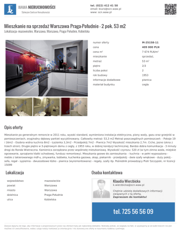 Mieszkanie na sprzedaż Warszawa Praga-Południe