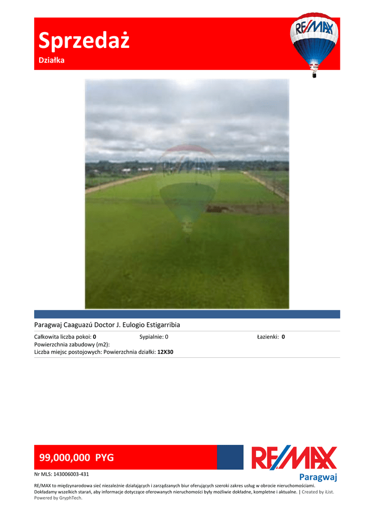 Sprzedaż Działka Paragwaj Caaguazú Doctor J. Eulogio Estigarribia Całkowita liczba pokoi: 0 Sypialnie: 0 Powierzchnia zabudowy (m2): Liczba miejsc postojowych: Powierzchnia działki: 12X30 Łazienki: 0 99,000,000 PYG Nr MLS: 143006003-431 Paragwaj RE/MAX to międzynarodowa sieć niezależnie działających i zarządzanych biur oferujących szeroki zakres usług w obrocie nieruchomościami. Dokładamy wszelkich starań, aby informacje dotyczące oferowanych nieruchomości były możliwie dokładne, kompletne i aktualne. | Created by iList. Powered by GryphTech. Sprzedaż Działka Alvin Schroeder Telefon do agenta +595983962600 Telefon bezpośredni +595528222725 Faks [email protected] RE/MAX VILLA REAL I Ruta 7 Dr. Rodriguez de Francia Doctor J. Eulogio Estigarribia Caaguazú Paraguay Loteamiento Nuevo Horizonte MANZANA 4 LOTE 5 Informacje dodatkowe Lokalizacja 99,000,000 PYG Nr MLS: 143006003-431 Paragwaj RE/MAX to międzynarodowa sieć niezależnie działających i zarządzanych biur oferujących szeroki zakres usług w obrocie nieruchomościami. Dokładamy wszelkich starań, aby informacje dotyczące oferowanych nieruchomości były możliwie dokładne, kompletne i aktualne. | Created by iList. Powered by GryphTech.
