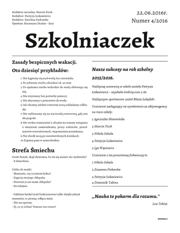 „Szkolniaczek” – wydanie 3 – 22.06.2016r.