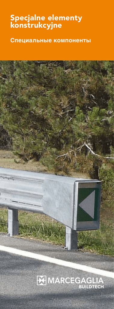Specjalne elementy konstrukcyjne Специальные компоненты steel safety on roadways Pełna oferta stalowych drogowych barier ochronnych Marcegaglia Buildtech od producenta wyrobów stalowych. Stalowe rozwiązania bezpieczeństwa na drogach. Bariery ochronne Marcegaglia Buildtech wchodzą w skład oferty produkcyjnej firmy Marcegaglia i są projektowane, montowane oraz badane na zgodność z wymogami konkretnych norm. Certyfikaty Сертификация - Сертификати - Certificări - Çertifikimet •RINA ISO 9001:2008 certyfikaty N. 12370/05/S •IQNet - CISQ/RINA Quality Management System ISO 9001:2008 Nr rejestracji IT-42009 •Certyfikaty CE stałości właściwości Testy zderzeniowe Испытания столкновением с препятствием Краш тестове - Teste de impact - Provat “Crash test” Odcinek końcowy bariery P4 Окончание для защитного ограждения класса P4 Краен елемент за предпазни огради P4 Terminal pentru bariere de protecţie P4 Terminal për barriera sigurie P4 Element końcowy Окончание Bariera Ограждения 1500 1500 5 1500 5 6 6 1500 5 6 1500 5 6 1500 5 6 1500 5 456 1255 5 6 7 6 851 6 6 6 8 6 8 1 6 8 1 6 8 1 6 8 6 8 1 1 8 1 8 8 1 1 1 7 4 4 4 4 4 4 4 4 158 400 4 220 5 4 3 8 6 2 8 1 Raporty z testów zderzeniowych, Отчеты по испытаниям столкновением, Резултати от краш тестове Rapoartele testului de impact, Raporti i provës Nr testu Lab. badawcze Test Typ Masa (kg) Prędkość (km/h) ASI maks. 1.4 PHD maks. 20g THIV D m Z m W m MCG/EXT-006/1154 LIER TT 1.3.110 Czoło 0° 1.500 110 0,9=A 12 32 1,1 Z1 0,6=W1 MCG/EXT-007/1285 LIER TT 2.1.100 Odchylenie od osi 900 100 1,2=B 19 39 1 Z1 1,4=W5 MCG/EXT-003/1122 LIER TT 4.3.110 Boczny 15° 1.500 110 0,9=A 12 32 1,2 Z1 1,7=W5 MCG/EXT-004/1123 LIER TT 5.1.100 165° 900 100 0,9=A 8 26 1,1 Z1 1,2=W4 2 4 4 2 5 8 6 4 1 2 3 8 3 1 6 4 6 2 8 3 3 8 3 1 6 1 7 Komponenty Компоненты, Компоненти, Componente, Komponentët 8 Opis Materiał Kod Описание Материал Обозначение Classe 8.8 63800453 Śruba z nakrętką i podkładką Болт с гайкой и шайбой, Болт с гайка и шайба, Şurub cu piuliţă şi şaibă, Bulon komplet me dado dhe rondele M16x50 mm 7 Odcinek końcowy Окончание, Краен елемент, Element terminal, Element fundor S 275 JR 59601557 6 Płytka usztywniająca Усиливающая пластина, Укрепваща пластина, Placă întăritoare, Piastër përforcuese S 275 JR 59601555 5 Profil potrójnie falowany 3-волновой профиль, Тривълнов профил, Lisă cu 3 ondulaţii, Fashë 3 valë L=1800 Th=3 mm S 275 JR 59300385 4 Podkładka dystansowa Проставка, Дистанционер, Distanţier, Distanciator Th=5 mm S 275 JR 59601553 Classe 8.8 63800014 3 Śruba z nakrętką i podkładką Болт с гайкой и шайбой, Болт с гайка и шайба, Şurub cu piuliţă şi şaibă, Bulon komplet me dado dhe rondele M16x50 mm 2 Profil kwadratowy Квадратная труба, квадратна тръба, Tub paralelipipedic, Tub katror 100x100 Th=6 H=709 mm S 275 JR 59601551 1 Słupek “U” Столб “U”, U-образно стълбче, Stâlp U, Shtyllë “U” 120x80 Th=6 H=1336 mm S 275 JR 59400562 Bariera ochronna dla motocyklistów - Poziom I Защитные ограждения для мотоциклистов - Уровень I Предпазни огради за мотоциклетисти - Ниво I Parapet de protecţie pentru motociclişti - Nivelul I Barriera siguri për motoçiklistë - Niveli I Przekrój A-AI Сечение A-AI A B maks. 4000 mm lub mniej макс. 4000 мм или менее 4000 665 1 3 720 5 4 4000 1 2 4 1500 364 3 1 5 20 2 AI BI 855 291 Przekrój B-BI Сечение B-BI 5 665 2 720 2 100 1500 3 1 500 855 20 2 Raporty z testów zderzeniowych, Отчеты по испытаниям столкновением, Резултати от краш тестове Rapoartele testului de impact, Raporti i provës Długość Masa Prędkość HIC 36 bariery (m) (kg) (km/h) Nr testu Lab. badawcze Test Typ PROVA M028 Aisico TM 3.60 Linia podziału jezdni 30° 16 80 60 298.84 528.77 1515.14 2589.73 27.26 28.14 43.54 PROVA M022 Aisico TM 1.60 Słupek 30° 16 80 60 169.11 337.34 1204.87 2654.33 73.79 20.61 42.27 FxN Fz Traz Fz Mcox Mcoy Mcoy N Compr. N Nm Flex Nm Estens. Nm 4 1 1 5 1 4 2 3 5 1 3 2 4 5 2 Komponenty Компоненты, Компоненти, Componente, Komponentët 1 2 Opis Materiał Kod Описание Материал Обозначение Corten 59400631 Classe 5.8 59800432 Słupek “U” Столб “U”, U-образно стълбче, Stâlp U, Shtyllë “U” Śruba z nakrętką z podkładką i podkładką Болт с гайкой шайбой и пластиной, Болт с гайка шайба и пластина, Şurub cu piuliţă şaibă şi placă, Bulon komplet me dado e rondele dhe piastra 80x40 Th=5 H=500 mm M16x40 mm C=60 nm 3 Wspornik do profili typu B Кронштейн для профиля типа B, Опора за профил тип B, Suport pentru profil tip B, Suport për profil tip B S 235 JR 59601663 4 Wspornik do profili typu A Кронштейн для профиля типа А, Опора за профил тип А, Suport pentru profil tip A, Suport për profil tip A S 235 JR 59601660 S 235 JR 59601609 5 Profil powstrzymujący dla motocyklistów Профиль для удержания мотоциклиста, Профил за задържане на мотоциклетисти, Lisă de reţinere pentru motociclişti, Lisă ruajtës për motoçiklistët Płot jednostronny PS2 Одинарное ограждение PS1 Едностранни прегради PS1 Parapet pe o s