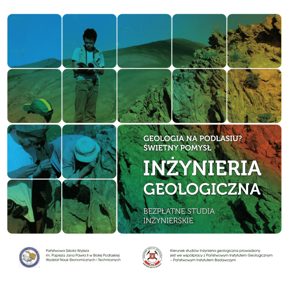 GEOLOGIA NA PODLASIU? ŚWIETNY POMYSŁ INŻYNIERIA GEOLOGICZNA BEZPŁATNE STUDIA INŻYNIERSKIE Państwowa Szkoła Wyższa im. Papieża Jana Pawła II w Białej Podlaskiej Wydział Nauk Ekonomicznych i Technicznych Kierunek studiów Inżynieria geologiczna prowadzony jest we współpracy z Państwowym Instytutem Geologicznym – Państwowym Instytutem Badawczym Autorzy odkrycia najstarszych na świecie śladów czworonogów w kamieniołomie „Zachełmie” (Góry Świętokrzyskie) od lewej: Piotr Szrek (PIG-PIB) i Grzegorz Niedźwiedzki. GEOLOG - ZAWÓD, KTÓRY STANIE SIĘ TWOJĄ PASJĄ Jeżeli w trakcie pieszych wycieczek zauważasz nie tylko piękno otaczającej Cię przyrody, ale także zastanawiasz się w jaki sposób teren został tak, a nie inaczej ukształtowany, jeżeli pijąc wodę zadajesz sobie pytanie skąd ona pochodzi, jeżeli pochylasz się nad kamieniem leżącym przy drodze, aby przyjrzeć się minerałom oznacza to, że ten zawód jest dla Ciebie! Pragniesz zgłębiać tajemnice ziemi po której stąpasz? Chcesz nauczyć się rozumnie gospodarować jej zasobami? Zacznij studia na kierunku Inżynieria geologiczna. Poznasz fundamenty wiedzy z zakresu geologii podstawowej i jej metod badawczych, a później zdobędziesz praktyczne umiejętności dokumentowania złóż kopalin i wód podziemnych, monitorowania stanu środowiska naturalnego i prognozowania geozagrożeń – takich jak osuwiska lub podtopienia. Twoje studia będzie wspierał merytorycznie największy ośrodek polskiej geologii – Państwowy Instytut Geologiczny – PIB, w którym zespół specjalistów od prawie stu lat bada środowisko nieożywione, kształtuje politykę surowcową państwa, odkrywa kolejne złoża kopalin oraz dokumentuje zasoby wód podziemnych. Dla tych ludzi geologia jest nie tylko zawodem, ale i sposobem na życie. KADRA DYDAKTYCZNA KIERUNKU INŻYNIERIA GEOLOGICZNA PREZENTUJEMY KILKU WYBRANYCH WYKŁADOWCÓW DR ZBIGNIEW FRANKOWSKI Geolog inżynierski specjalizujący się w badaniach terenowych. Prowadził prace dokumentacyjne związane z budową licznych obiektów hydrotechnicznych, liniowych i energetycznych, w kraju i za granicą. Współautor poradników z zakresu dokumentowania warunków geologiczno-inżynierskich dla potrzeb likwidacji kopalń, budownictwa morskiego i rekultywacji terenów zdegradowanych. Przewodniczący Komisji Dokumentacji Geologiczno-Inżynierskich przy Ministrze Środowiska. Od 1968 r. pracownik Państwowego Instytutu Geologicznego – PIB. PROF. DR HAB. JERZY NAWROCKI Geolog i geofizyk regionalny specjalizujący się w badaniach paleomagnetycznych. Poza Polską swoje badania prowadził między innymi na Spitsbergenie, w zachodniej Antarktyce i na Ukrainie. Habilitował się przed Radą Naukową Instytutu Geofizyki PAN, która później wnioskowała również o jego tytuł profesora. W latach 2006-2007 zastępca dyrektora Państwowego Instytutu Geologicznego – PIB do spraw naukowych. Od 2008 r. dyrektor Instytutu. Członek zarządu organizacji służb geologicznych Europy EuroGeoSurveys z siedzibą w Brukseli. PROF. DR HAB. JERZY NITYCHORUK Absolwent Wydziału Geografii na Uniwersytecie Marii Curie-Skłodowskiej w Lublinie oraz Wydziału Geologii na Uniwersytecie Warszawskim (specjalność: geologia czwartorzędu). W 2012 r. otrzymał tytuł naukowy profesora. Specjalizuje się w rekonstrukcji procesów rzeźbotwórczych związany z działalnością lodowców i lądolodów oraz w badaniach paleoklimatycznych i paleośrodowiskowych. Prowadził badania naukowe na Spitsbergenie. W latach 1984-2013 był wykładowcą na Wydziale Geologii UW. Jest członkiem wielu krajowych i międzynarodowych organizacji naukowych. DR MAŁGORZATA WOŹNICKA Hydrogeolog zajmujący się tematyką zagrożeń i ochrony wód podziemnych. Realizuje projekty z zakresu gospodarki wodnej, analizy presji oraz oceny ryzyka przedsięwzięć oddziaływujących na stan wód podziemnych. W Państwowym Instytucie Geologicznym – PIB prowadzi koordynację zadań państwowej służby hydrogeologicznej. Czynnie pracuje w Komisji Dokumentacji Hydrogeologicznych przy Ministrze Środowiska oraz Komisji Opracowań Kartograficznych. CZY ZAWÓD GEOLOGA JEST DLA CIEBIE? TAK, JEŻELI: posiadasz pasję badawczą, zamiłowanie do rozwiązywania problemów naukowych i umiejętności dedukcyjnego myślenia z wykorzystaniem wielu dziedzin wiedzy umiesz pracować w trudnych warunkach terenowych i zawsze jesteś gotowy na przygodę umiesz łączyć wiedzę teoretyczną z informacjami zdobytymi w terenie i dokonywać analiz opartych o różne kryteria potrafisz być „detektywem”, gdyż widząc efekt będziesz odtwarzał proces, w wyniku którego powstało dane złoże lub struktura geologiczna jesteś odpowiedzialny, gdyż czerpiąc wiedzę z wielu pokrewnych dyscyplin naukowych będziesz określał zasady zrównoważonego gospodarowania zasobami Ziemi masz szacunek dla przyrody i umiesz dokonywać wyborów pomiędzy różnymi interesami jej użytkowników INŻYNIERIA GEOLOGICZNA CIEKAWE STUDIA GEOLOGIA, A TYM SAMYM JEJ GAŁĄŹ – INŻYNIERIA GEOLOGICZNA, TO NAUKA W ZNACZNEJ MIERZE OPARTA NA DOKONYWANIU OBSERWACJI I BADAŃ ŚRODOWISKA NATURALNEGO. DLATEGO TEŻ PROGRAM ZAJĘĆ DYDAKTYCZNYCH JEST BARDZO ZRÓŻNICOWANY, I OPRÓCZ STANDARDOWYCH WYKŁADÓW I ĆWICZEŃ, OBEJMUJE LABORATORIA ORAZ LICZNE PRAKTYKI TERENOWE. Współczesna geologia to nowoczesne techniki laboratoryjne, precyzyjna aparatura badacza i specjalistyczne oprogramowania komputerowe. Ale zanim je wykorzystamy musimy z terenu przywieźć odpowiedni do badań materiał – skały, skamieniałości, próbki wód i osadów. PRAKTYKI TERENOWE ODGRYWAJĄ NIEZWYKLE WAŻNĄ ROLĘ W ZDOBYWANIU WIEDZY Z ZAKRESU GEOLOGII. MOŻNA POWIEDZIEĆ, ŻE WŁAŚNIE W TERENIE GEOLOG JEST „U SIEBIE” I CZUJE SIĘ „JAK RYBA W WODZIE”. Dlaczego? .... ... Odpowiedź jest prosta – tylko tu ma możliwość obserwowania skał, minerałów, skamieniałości, odtwar