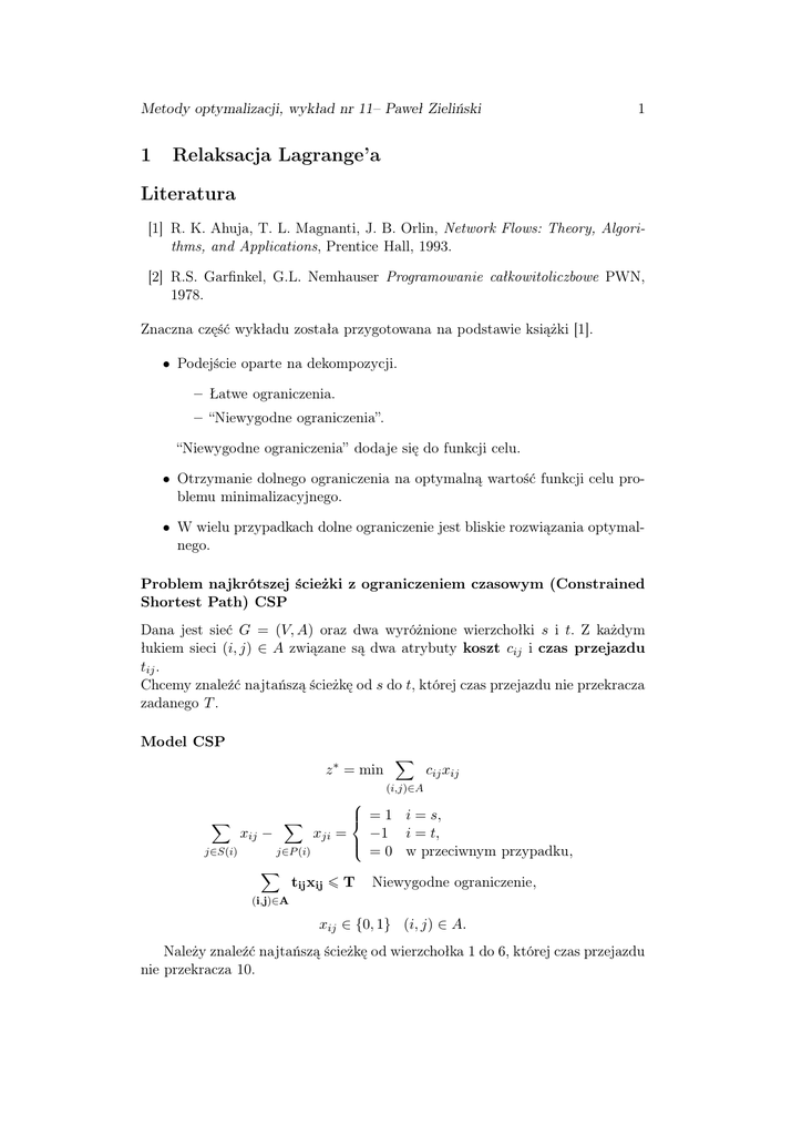 [2] R.S. Garfinkel, G.L. Nemhauser Programowanie całkowitoliczbowe PWN,