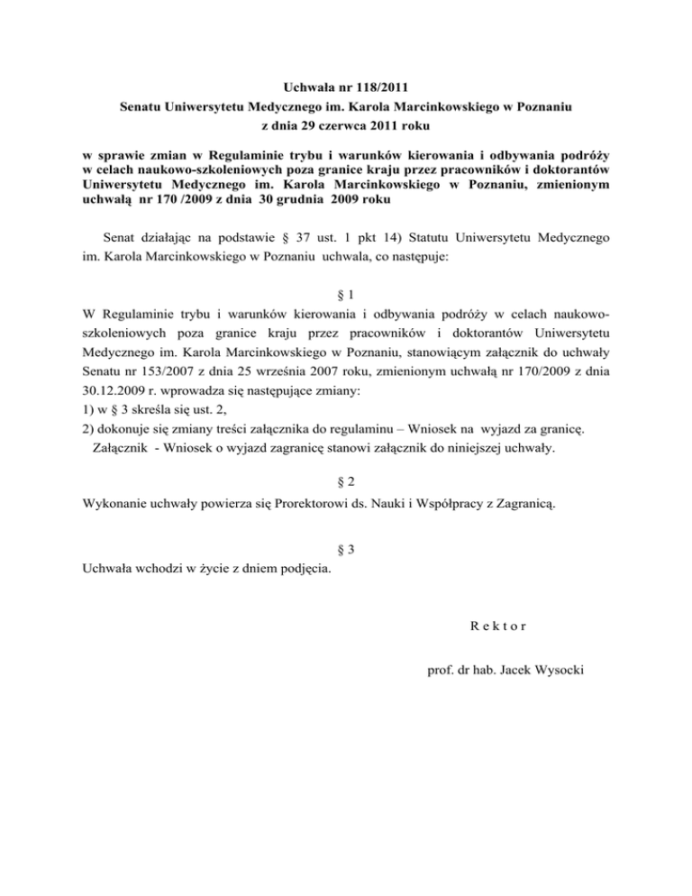 Uchwała nr 118/2011 Senatu Uniwersytetu Medycznego