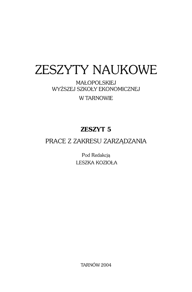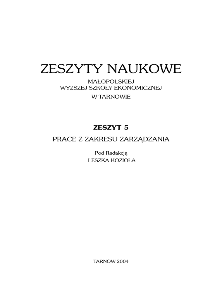 Ekonomicznej w Tarnowie opublikowano artyku³y pracowników Katedry Zarz¹dzania