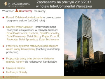 Zapraszamy na praktyki 2016/2017 w hotelu InterContinental