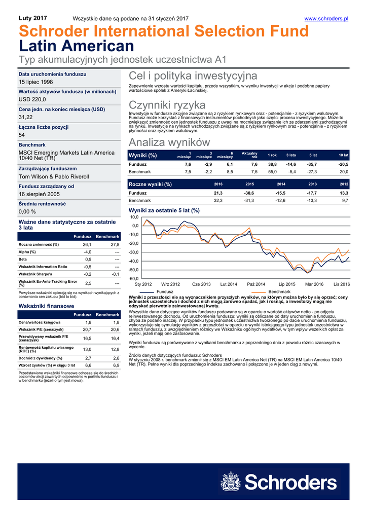 Niniejszy dokument nie stanowi oferty skierowanej do żadnej osoby ani próby ubiegania się przez jakąkolwiek osobę o uzyskanie zapisu na jednostki uczestnictwa Schroder International Selection Fund