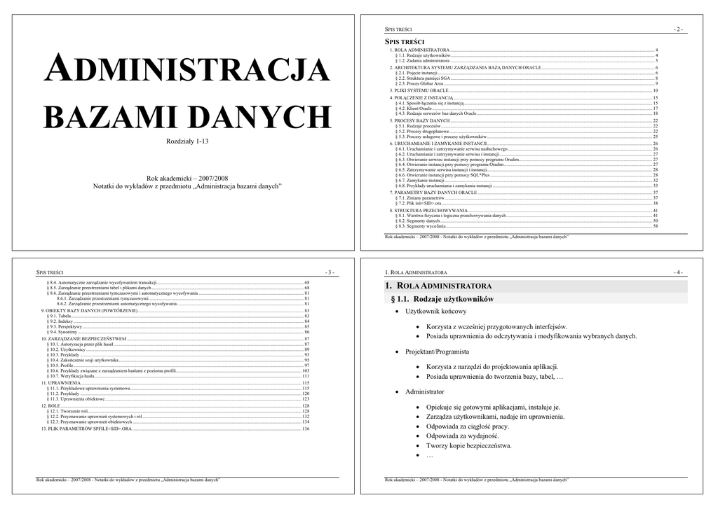 Notatki do wykáadów z przedmiotu „Administracja bazami danych”